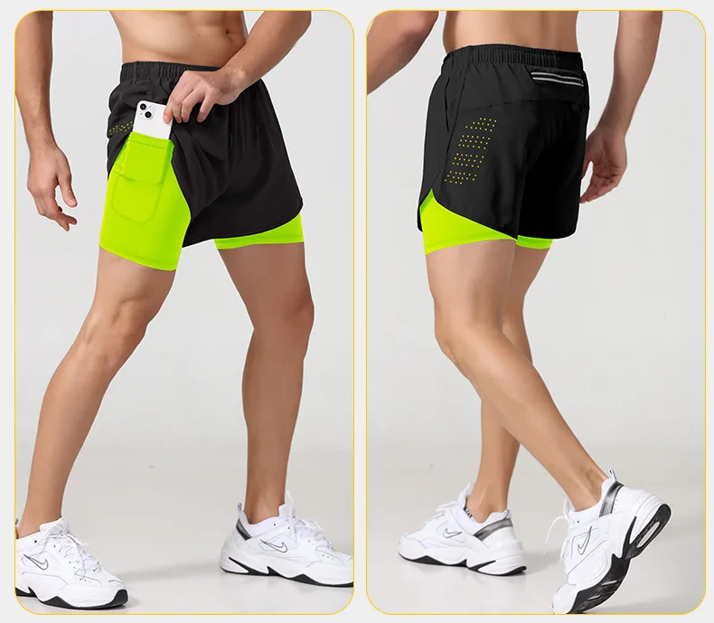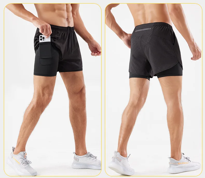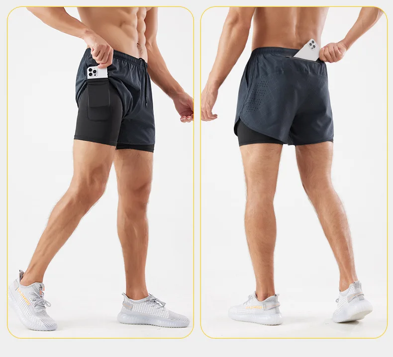 2 in 1 Custom Summer Running Double Layer Basketball Gym Shorts Print 5 Inch Golf Mesh Shorts for Men