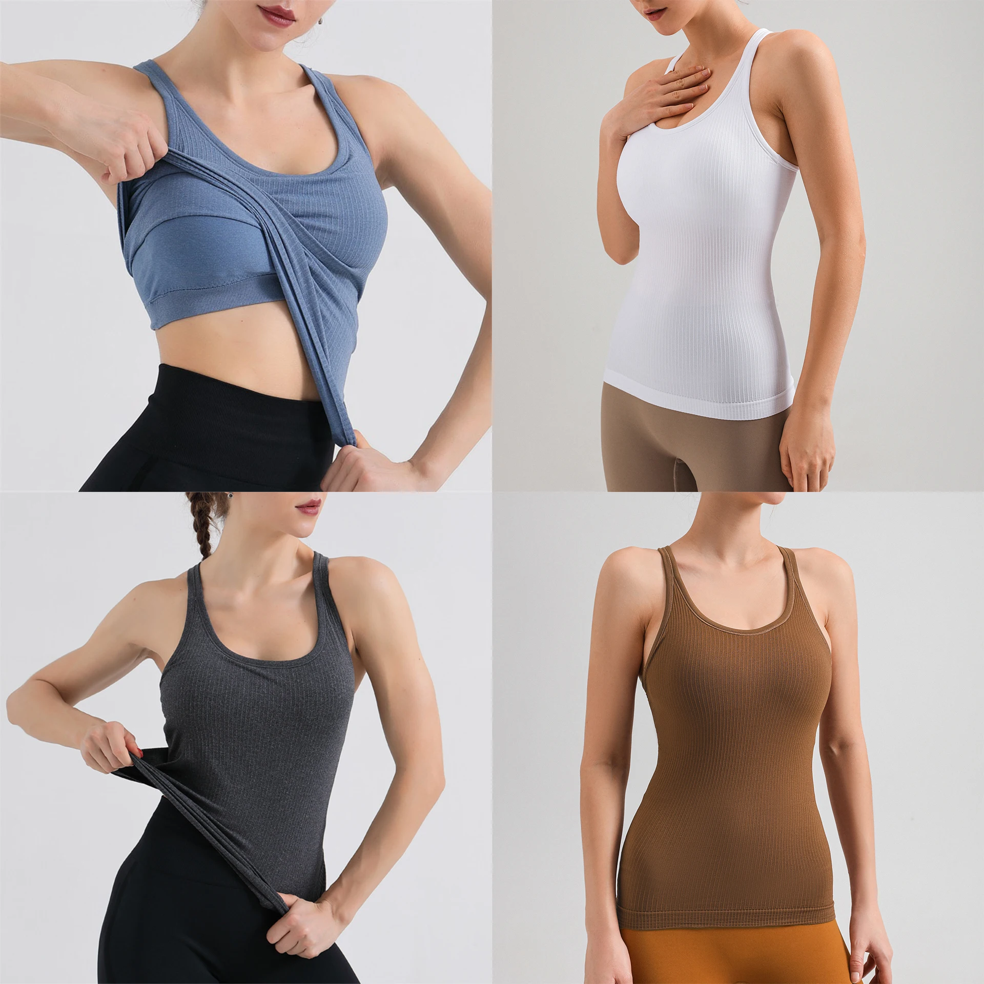 2 in 1 Double Layer Tank Top Custom Yoga Racer Back Vest Sports Fitness Workout Top With Chest Pad