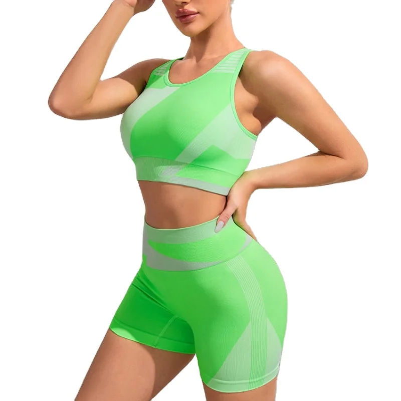 2 Piece Colorblock Yoga Sets Four Way Stretch Seamless Stitching Color DOPA Sports Bra and Shorts Set