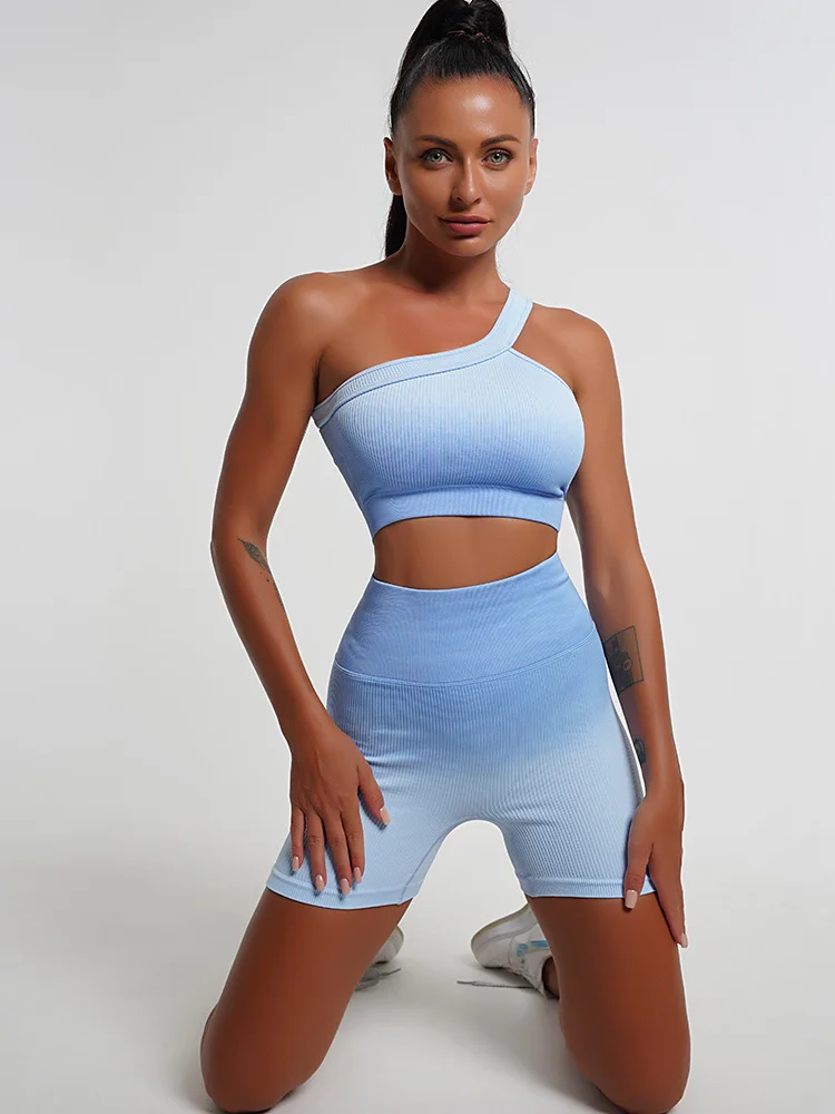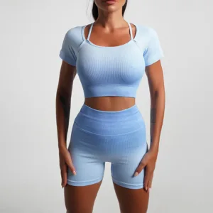 2 Piece Seamless Knitted Summer Sports Outfits Push up Running Tight Elastic Tie Dye Print Yoga Sets
