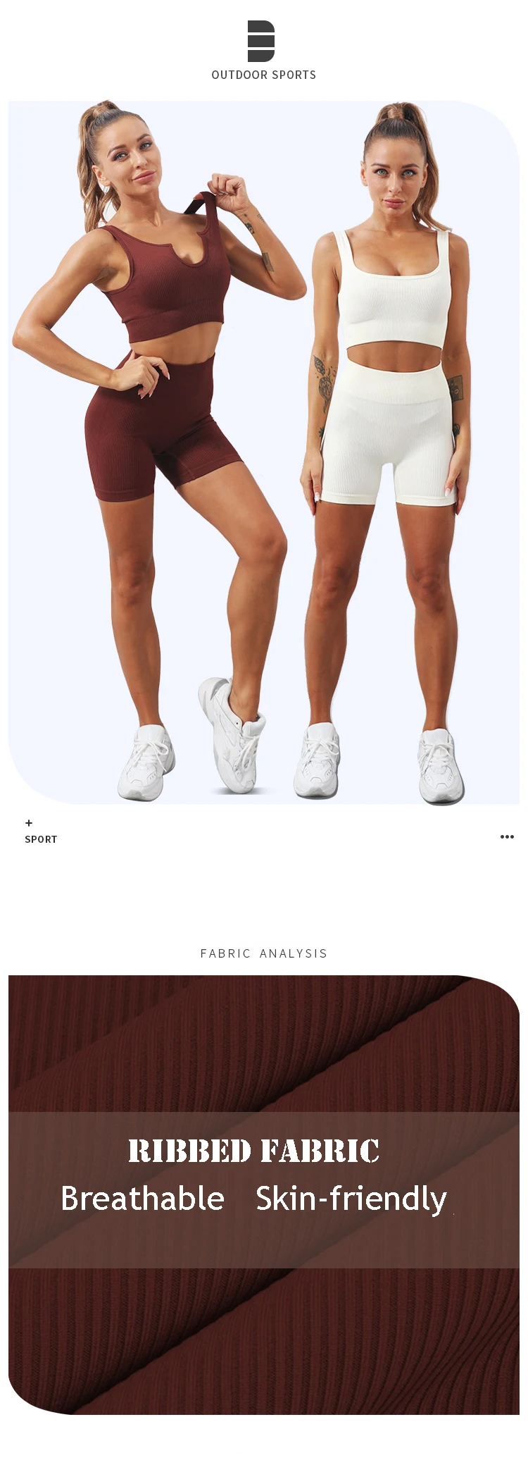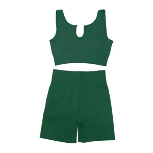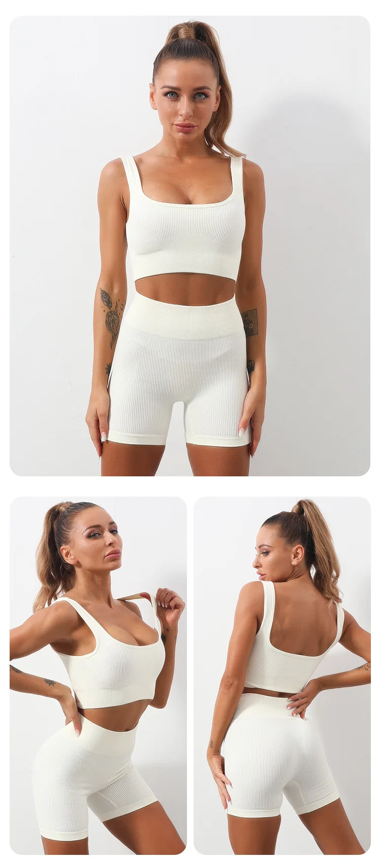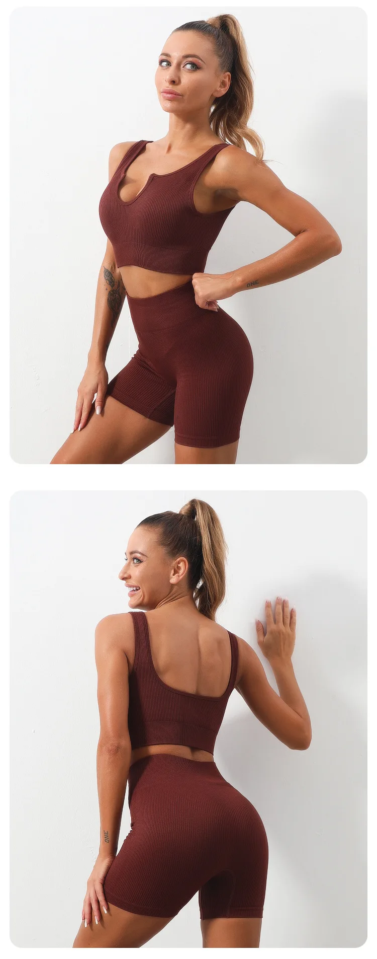 Product Name 2 Piece Sports Bra and Shorts Set Seamless Ribbed Sexy U Neck Low Cut Exercise Fitness Sportswear Women Workout Gym Sets