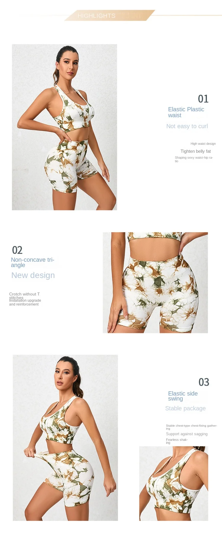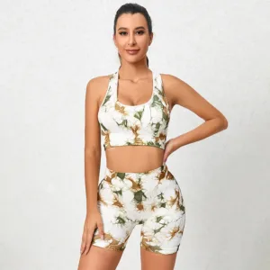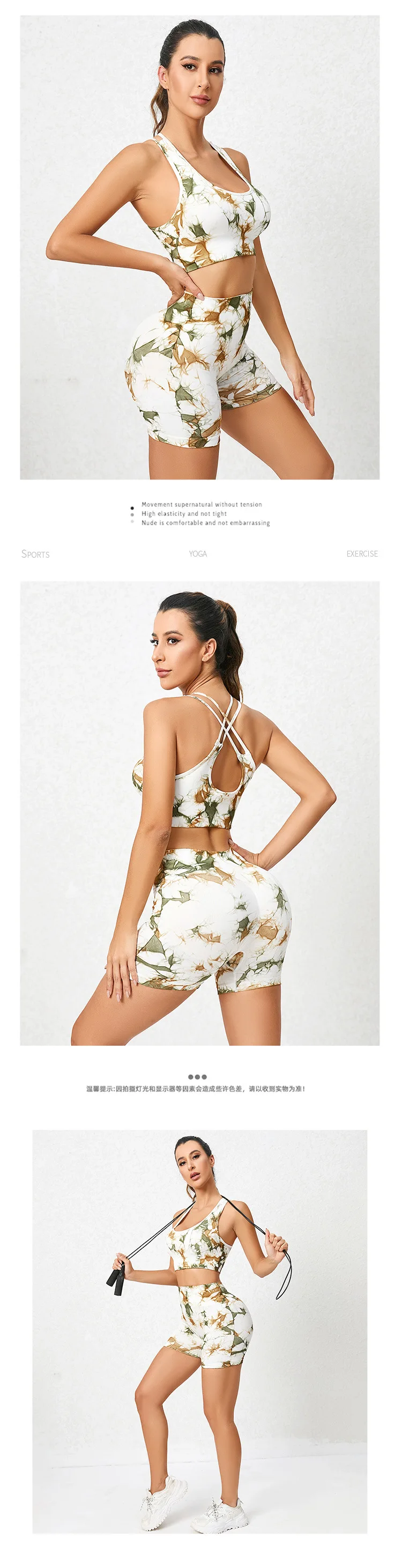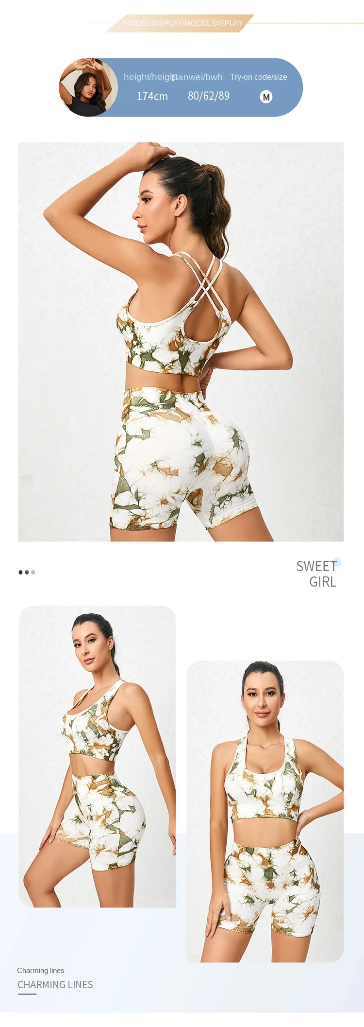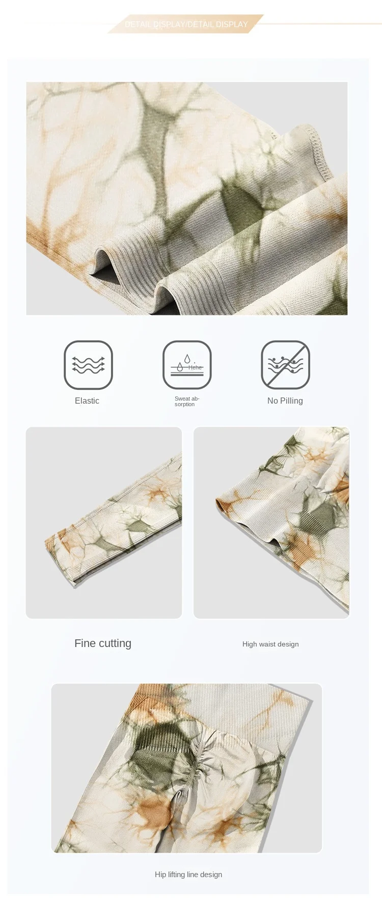 Product Name 2 Piece Women Yoga Sets Fitness Sweat Wicking Four Way Stretch Tie Dye Print Seamless Yoga Set