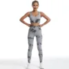 4 Piece Seamless Yoga Sets Athletic Gym Wear Ribbed Halter Sports Bra Racerback Short Sleeve Leggings Workout Set Women