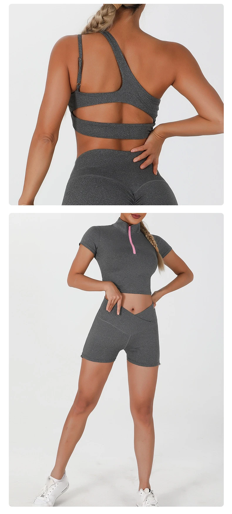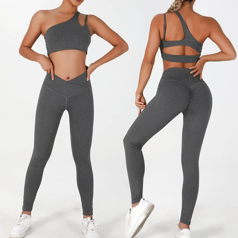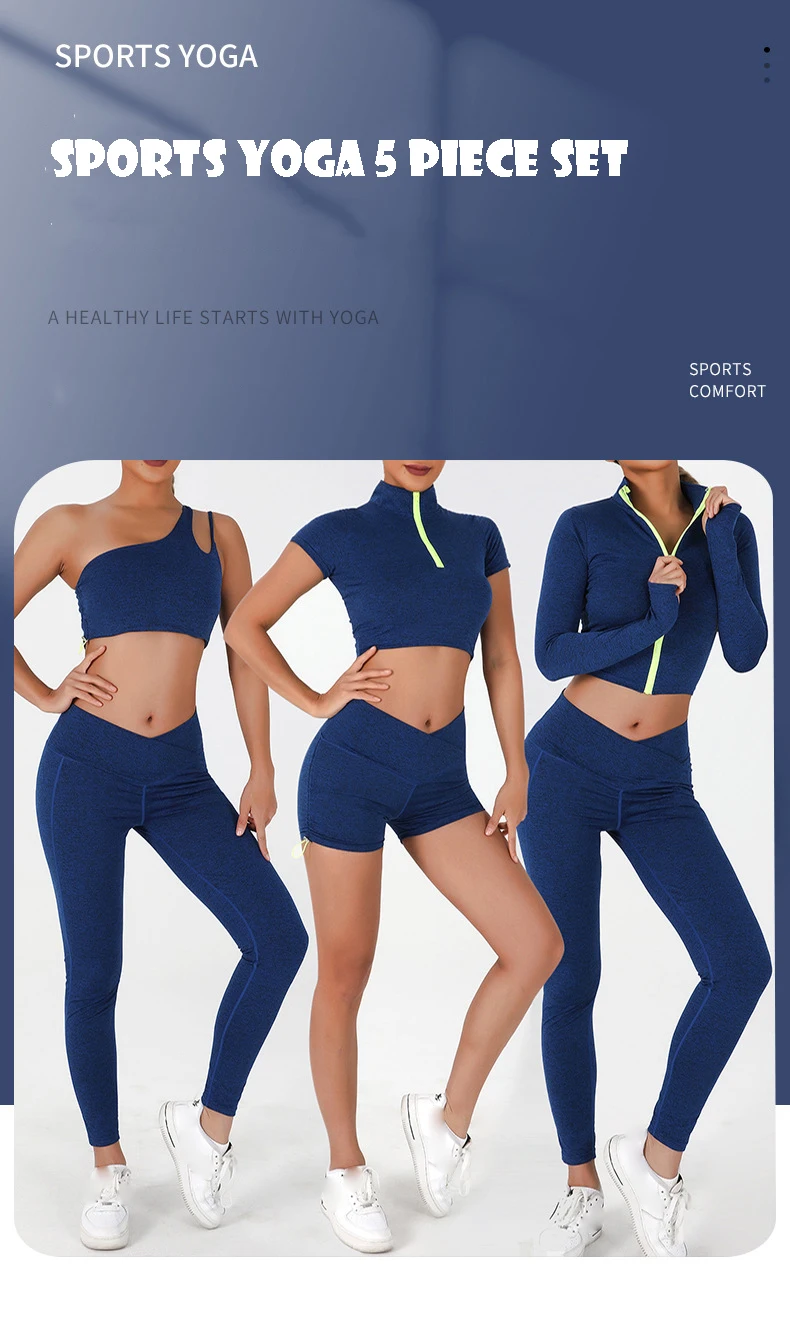 Product Name 5 Piece Yoga Gym Sets Women Sweat Suits V Neck High Waist Leggings One Shoulder Bra Adjustable Shorts Workout Sets for Women