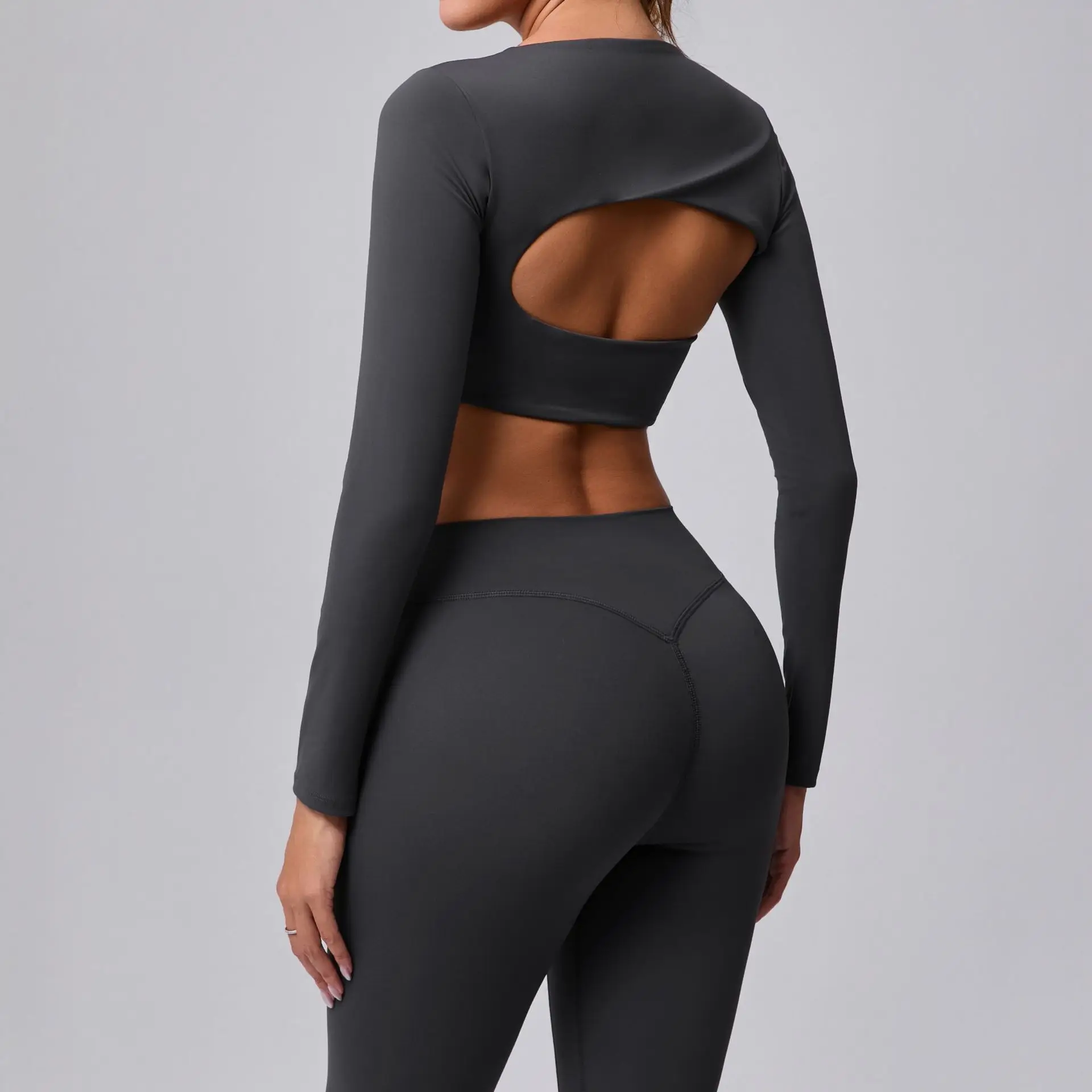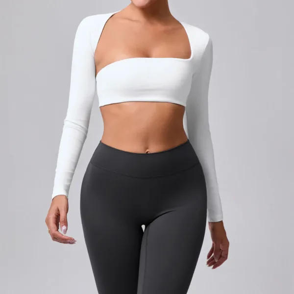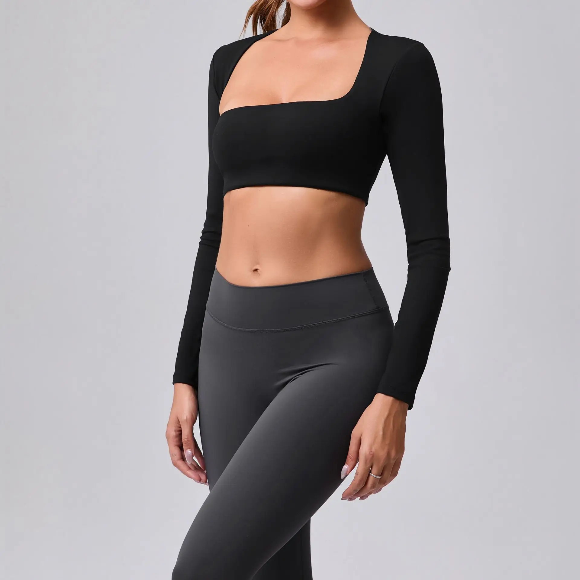 Asymmetric Women Sexy Long Sleeve Yoga Top Quick Drying Running Short Shirts Breathable Women’s Sports T-shirt