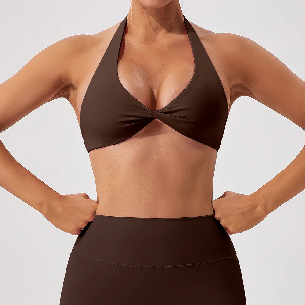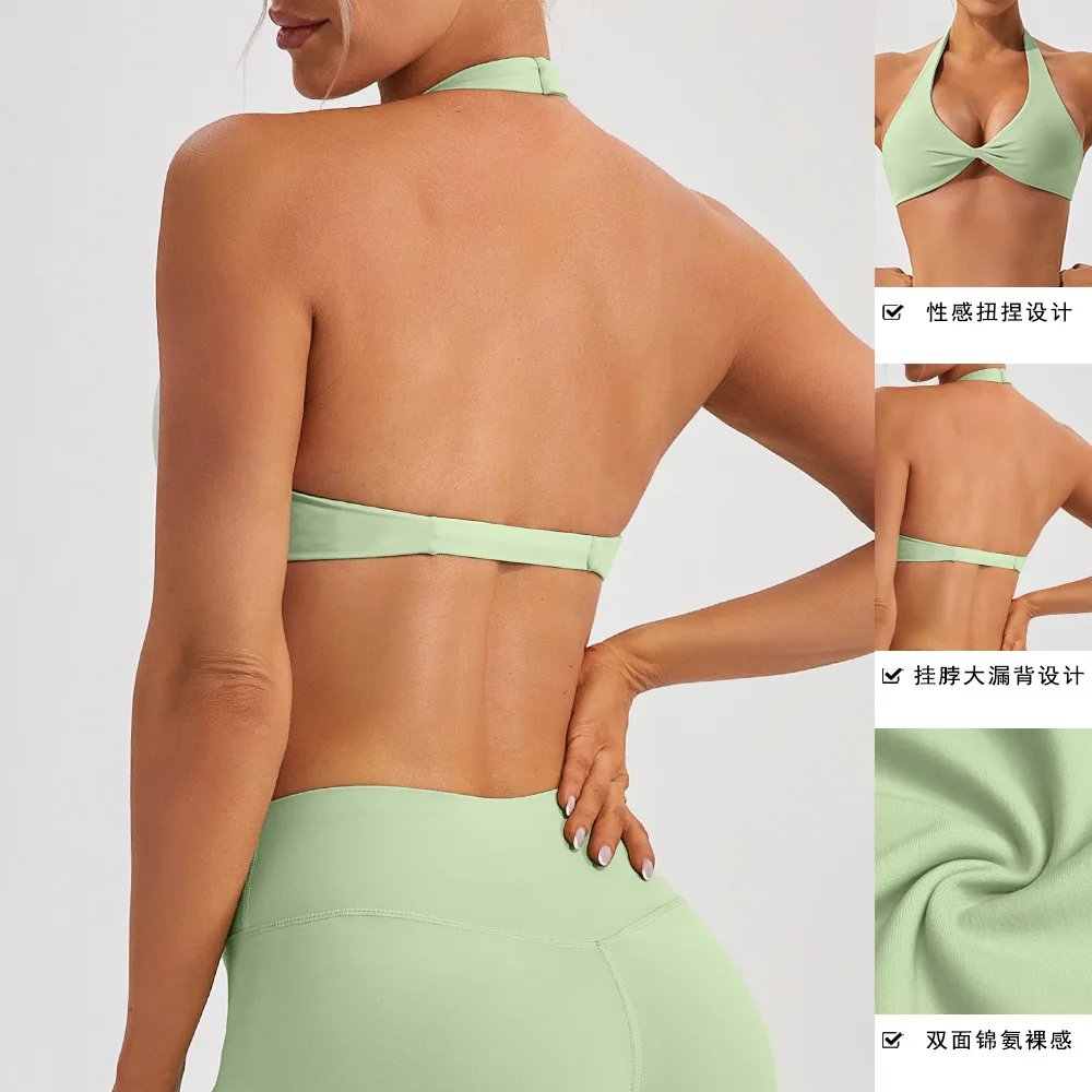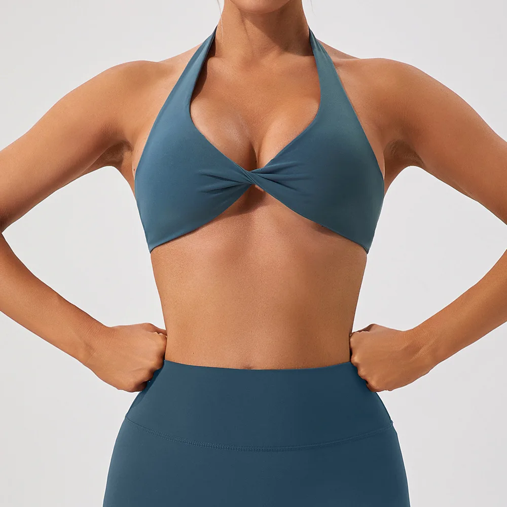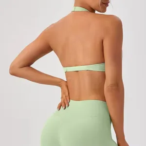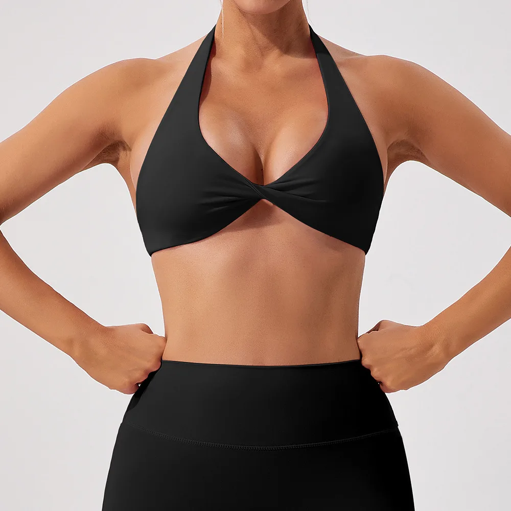 Product Name | Best Selling Women Workout Deep V Sport Bra Top Fitness Backless Padded Soft Training Gym Halter Sports Bra |