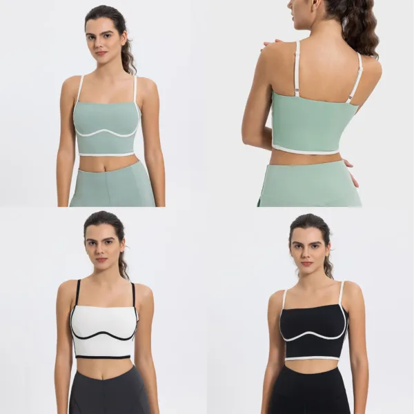 Color Blocking Adjustable Sport Vest Strap Fitness Tank Top High Elastic Breathable Women Sports Bra