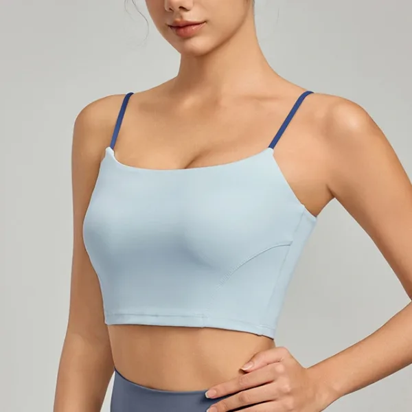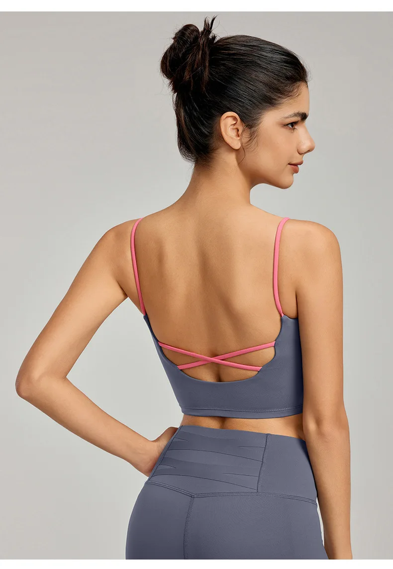 Contrast Color Thin Strap Beauty Back Tight Yoga Top High Shockproof Gym Fitness Sports Bra