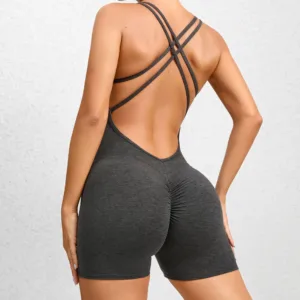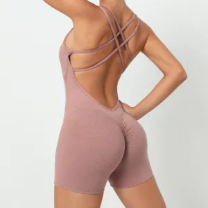 Cross Thin Strap Hollow Out Scrunch Butt Sports Unitard Breathable One Piece Active Wear Women Gym Jumpsuits