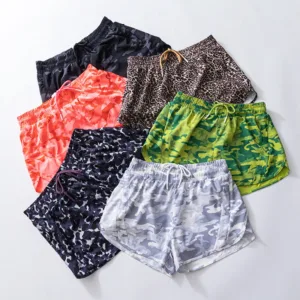 Custom Camo Leopard Printing Two in One Quick Dry Women Running Shorts Gym Fitness Shorts for Women