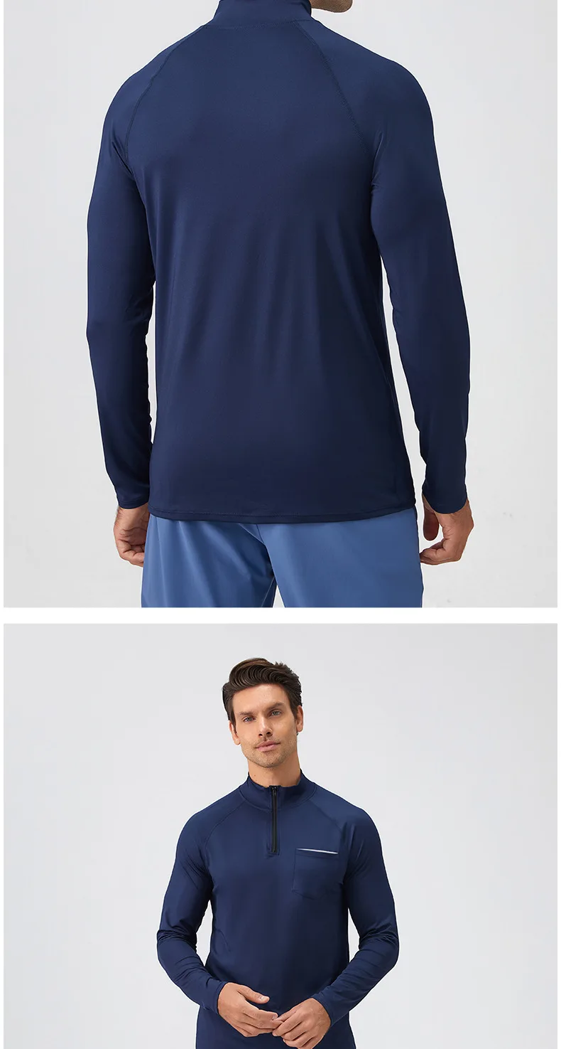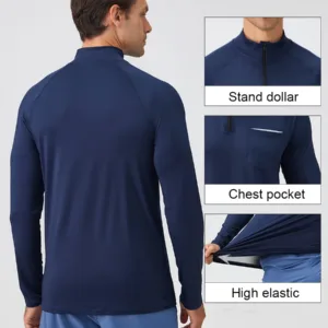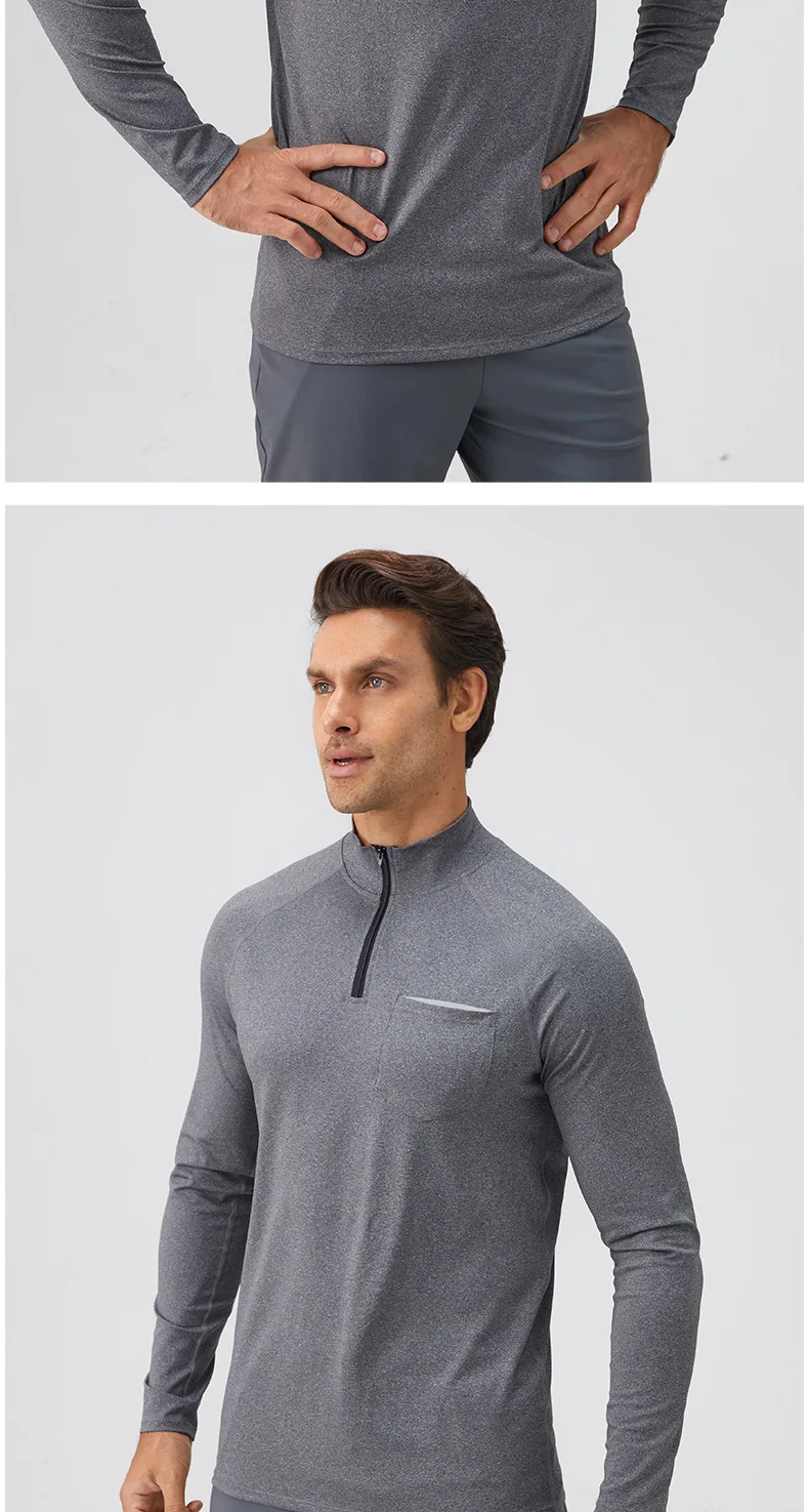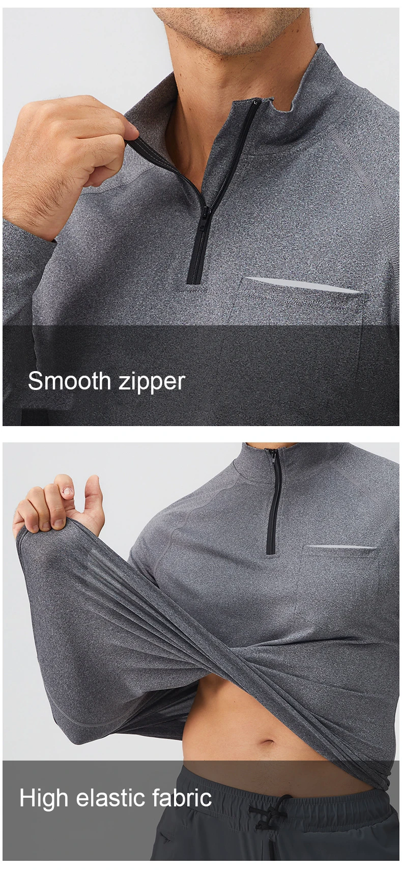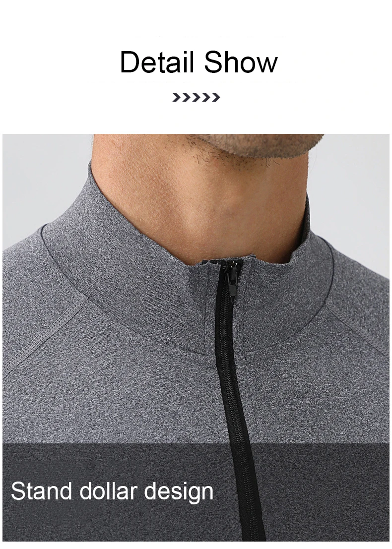 Custom Logo Blank Quarter Zip Sports T Shirts Pullover Compression Stand Dollar Quick Dry Running Gym T-shirts Men