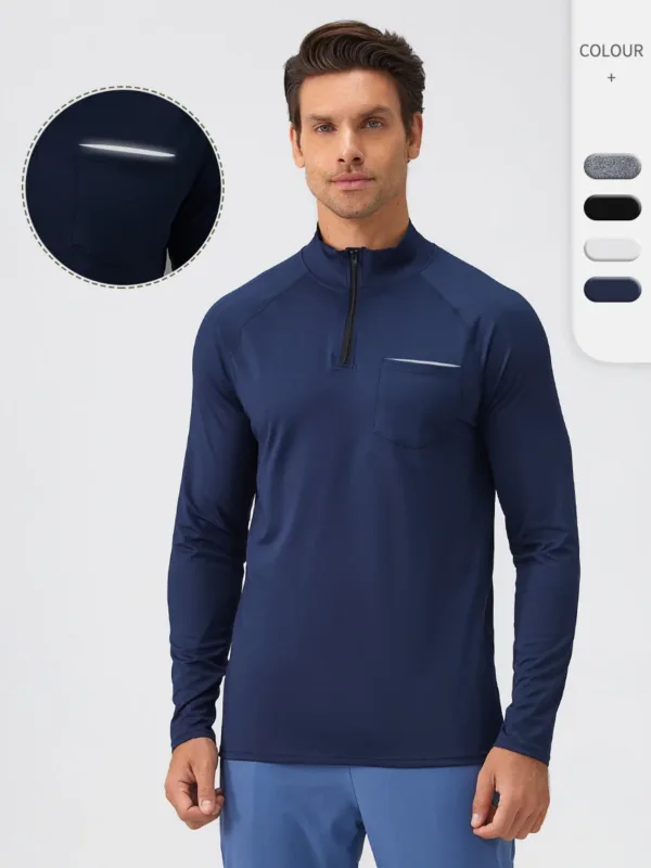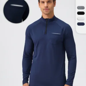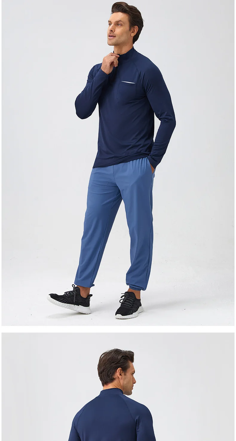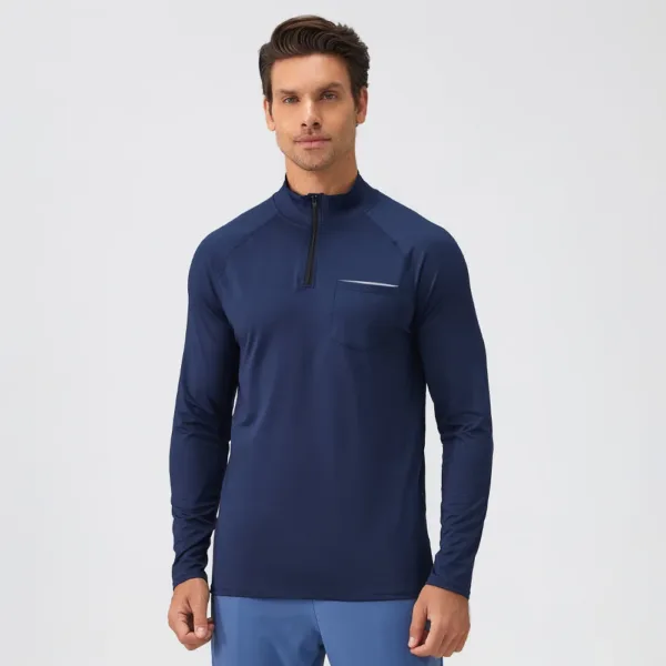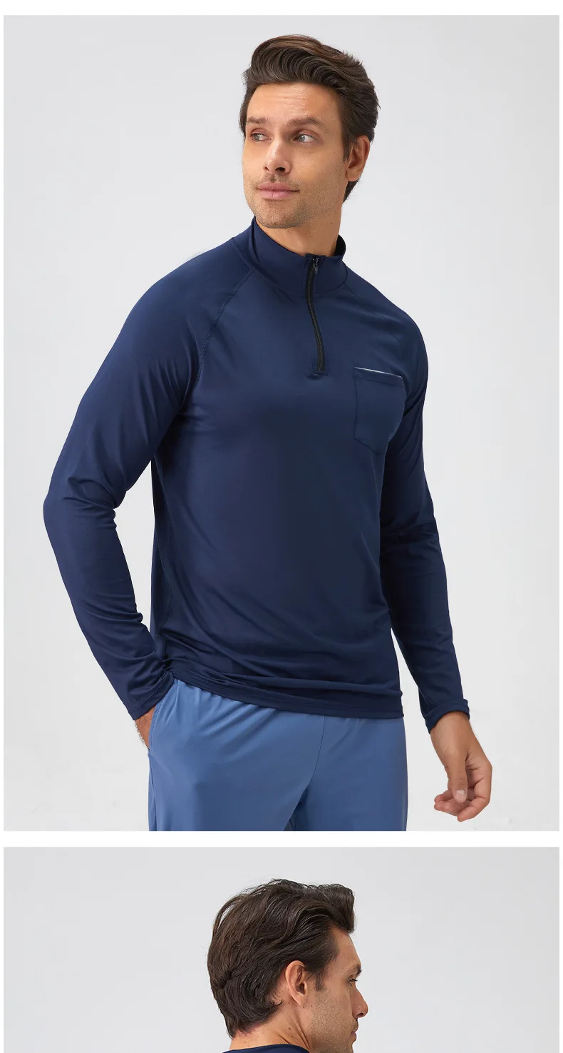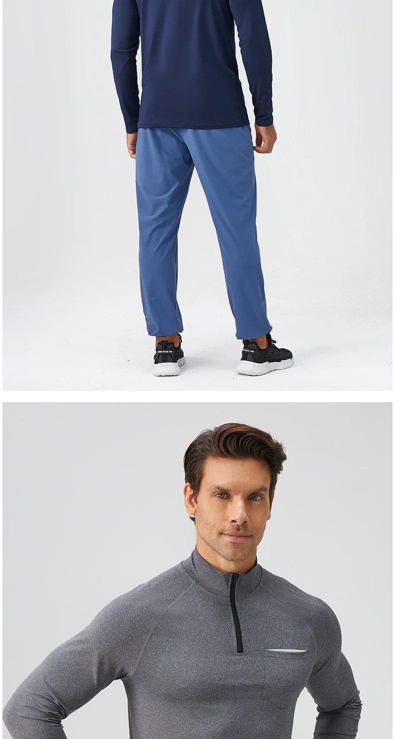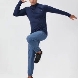Custom Logo Blank Quarter Zip Sports T Shirts Pullover Compression Stand Dollar Quick Dry Running Gym T-shirts Men
