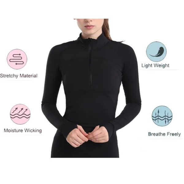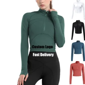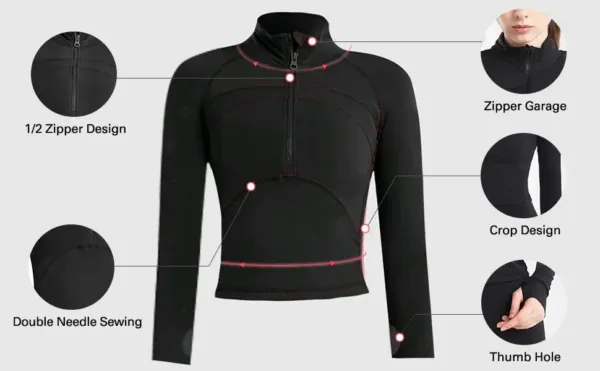 Product Name | Custom Logo Cropped Long Sleeve Gym Jacket Top Women Compression Pullover Athletic Outwear Slim Fit Half Zip Sweatshirt |