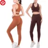 Custom Logo Women Fitness Seamless Stretchy Backless Sports Wear Gym Breathable Hollow Out Solid Two Piece Yoga Sets