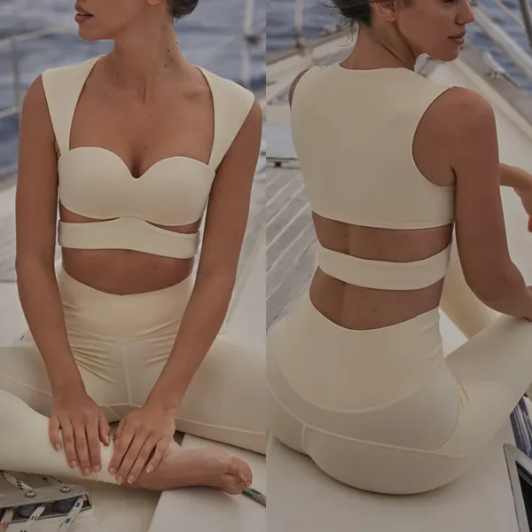 Product Name Custom Logo Women Fitness Seamless Stretchy Backless Sports Wear Gym Breathable Hollow Out Solid Two Piece Yoga Sets