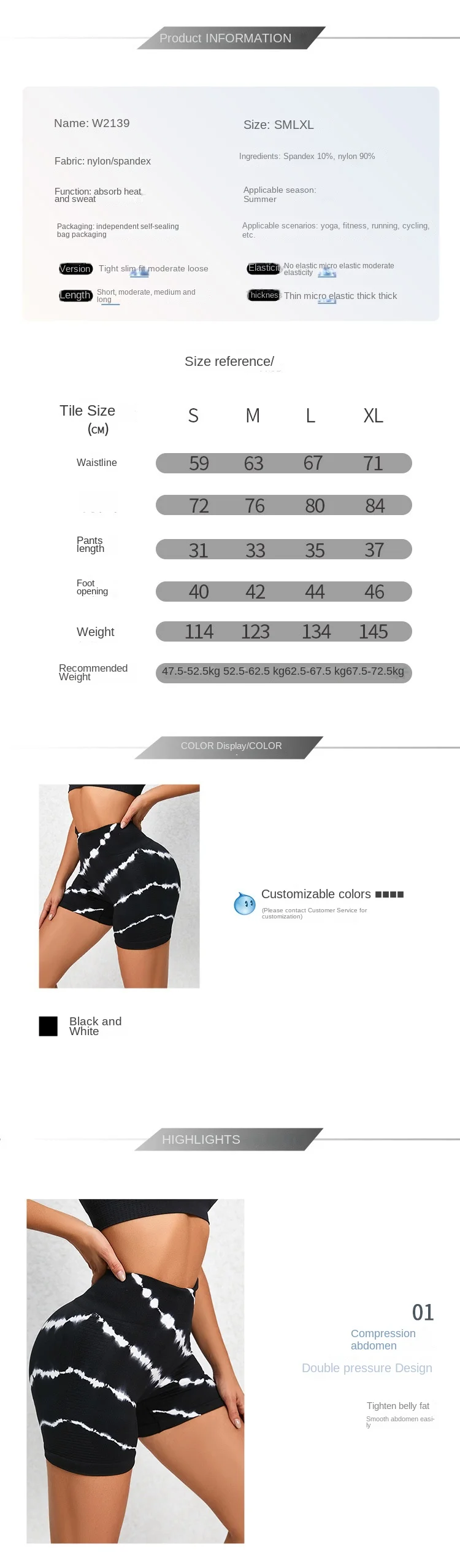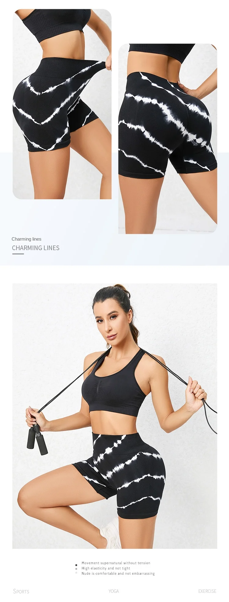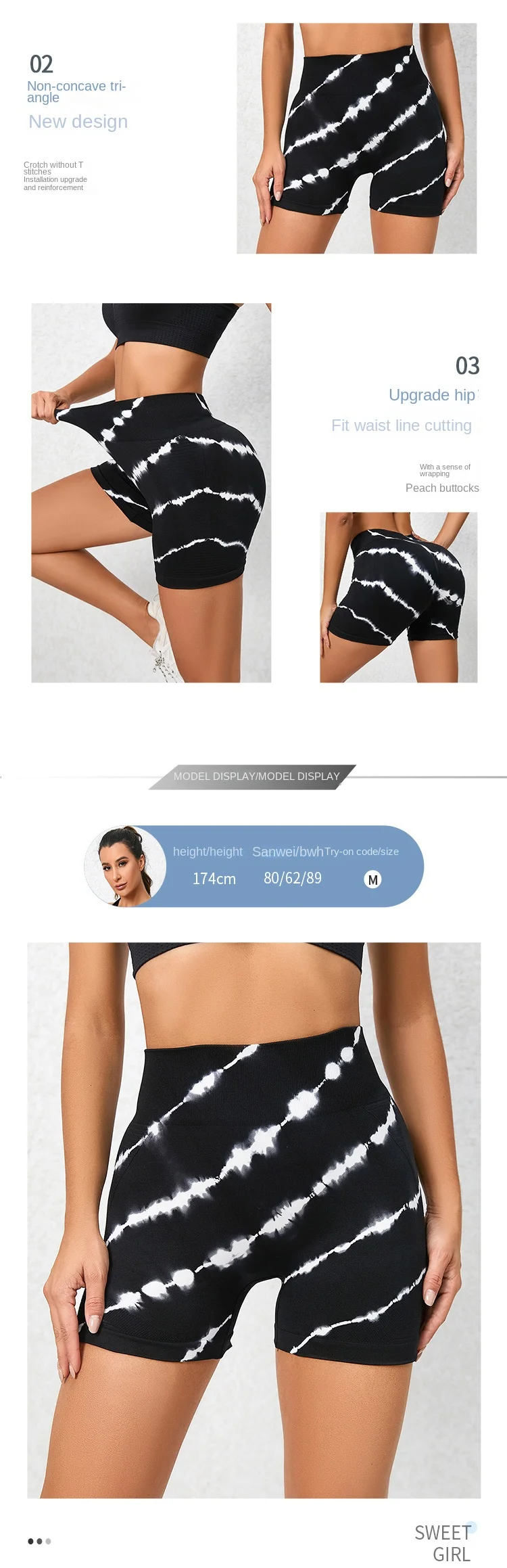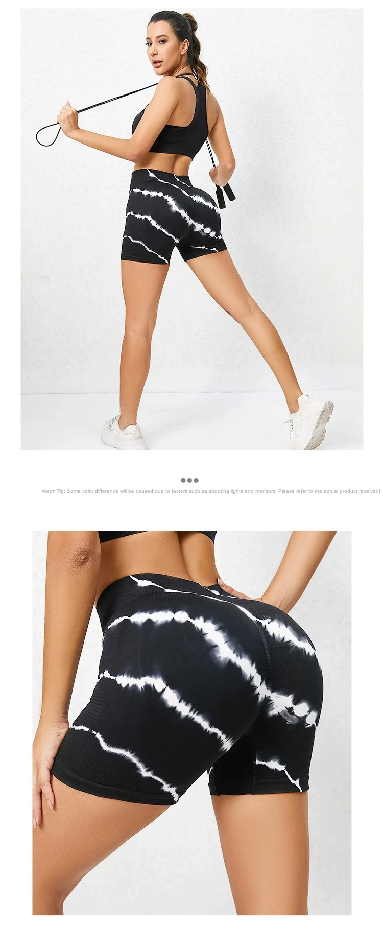 Product Name Custom Logo Yoga Seamless Sports Running Shorts Women High Waist Peach Butt Tie Dye Shorts