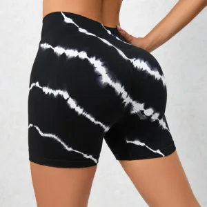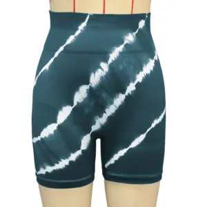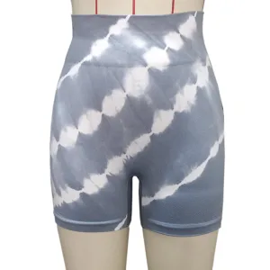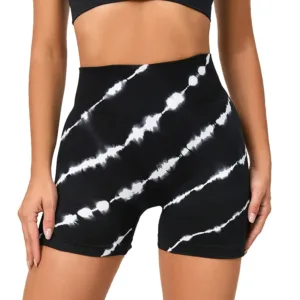 Custom Logo Yoga Seamless Sports Running Shorts Women High Waist Peach Butt Tie Dye Shorts