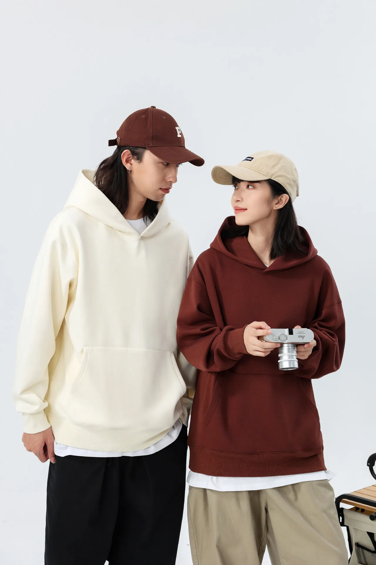 Custom Pattern Puff Printing No Drawstring Hoodie Heavy Weight Oversized Hooded Pullover Cotton Hoodies
