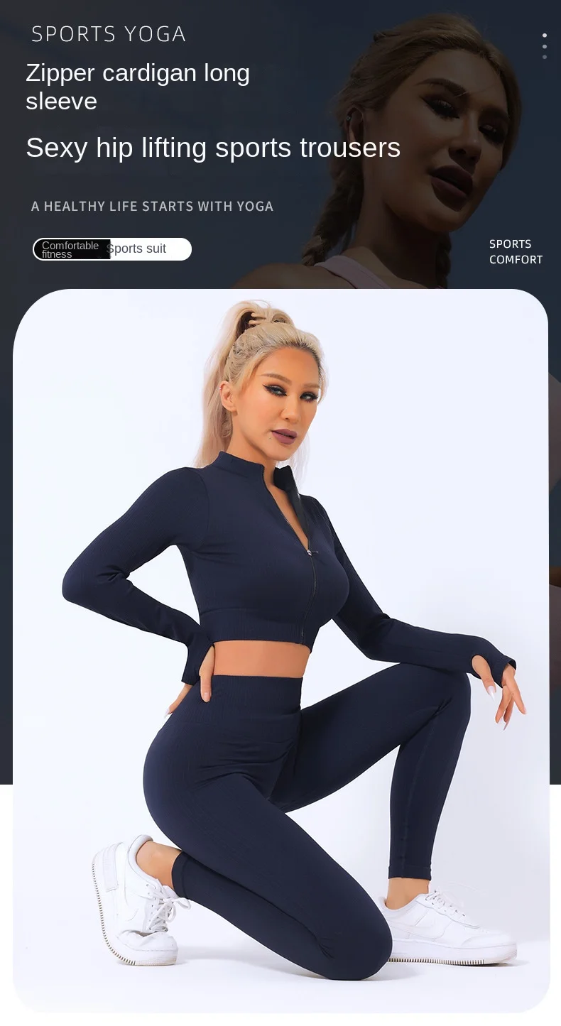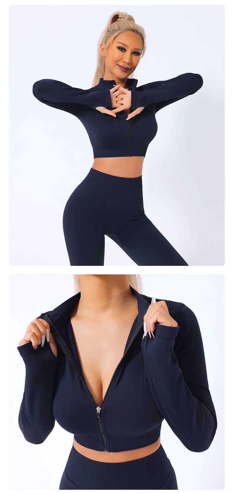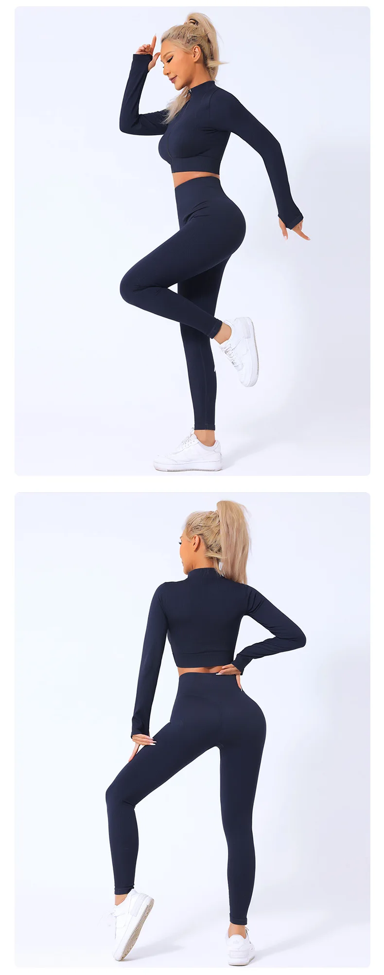 | Product Name | Custom Plus Size Long Sleeve Crop Top Yoga Set Solid Front Zipper High Waist Leggings Women Outfit Yoga Sets |