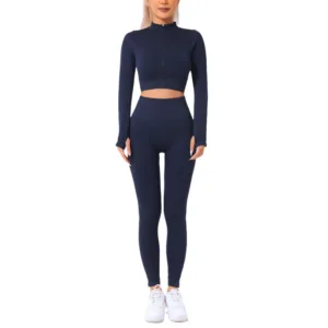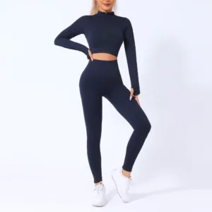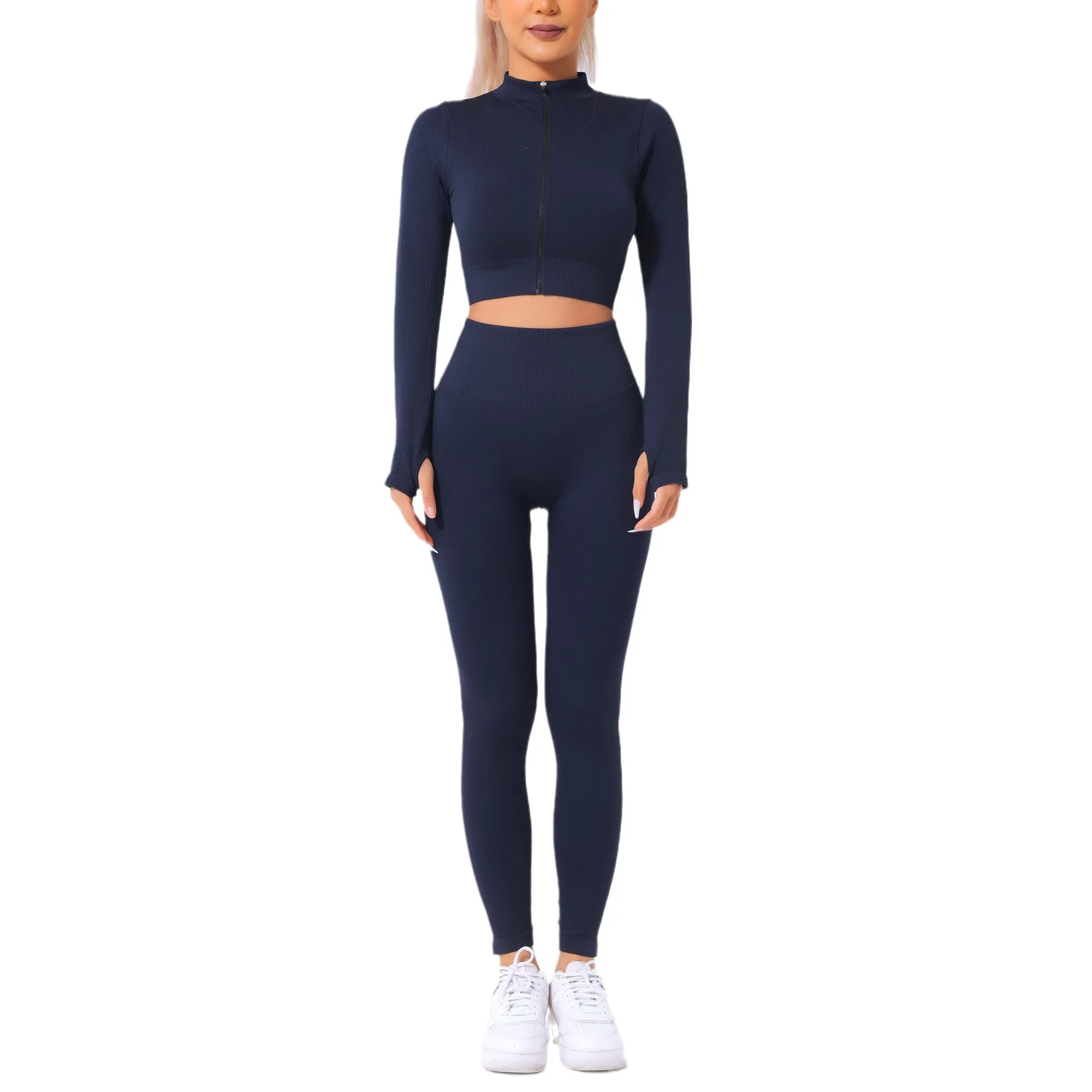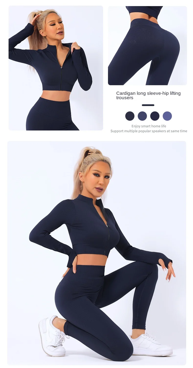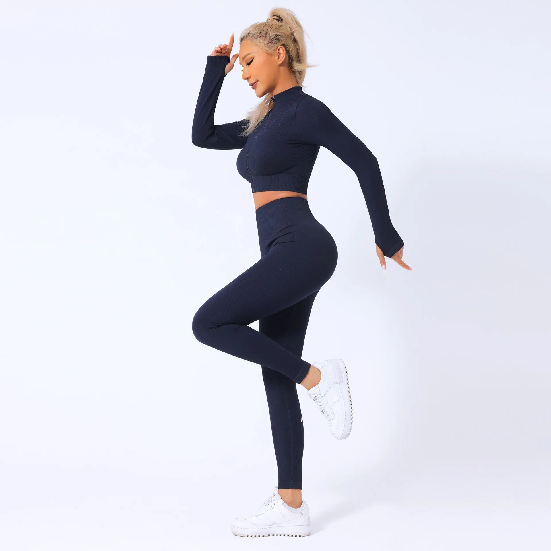 | Product Name | Custom Plus Size Long Sleeve Crop Top Yoga Set Solid Front Zipper High Waist Leggings Women Outfit Yoga Sets |