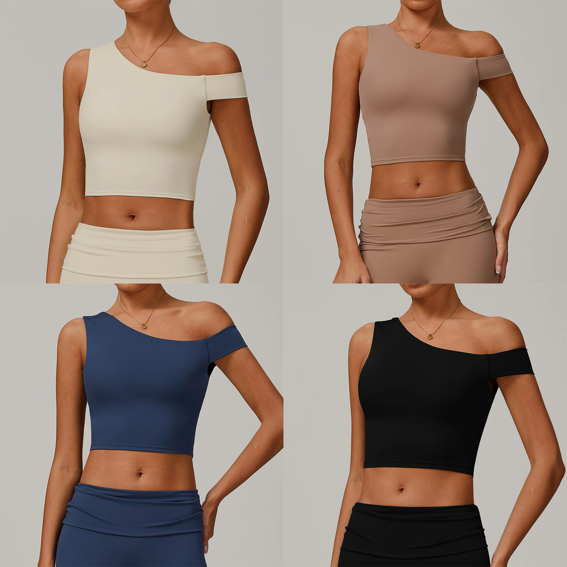Custom Sustainable Recycled Quick-Drying Breathable Yoga Vest Women Off-Shoulder Sports Fitness Yoga Tops