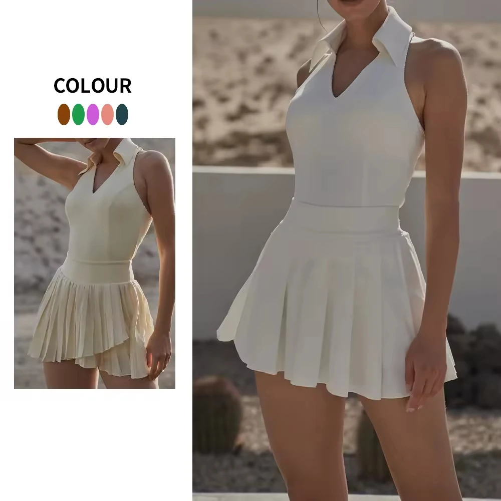 Product Name | One Piece Bodysuit Summer Bodycon Dress Sports Golf Athletic Double Layer Tennis Skirt Sets Tennis Dress with Shorts |
