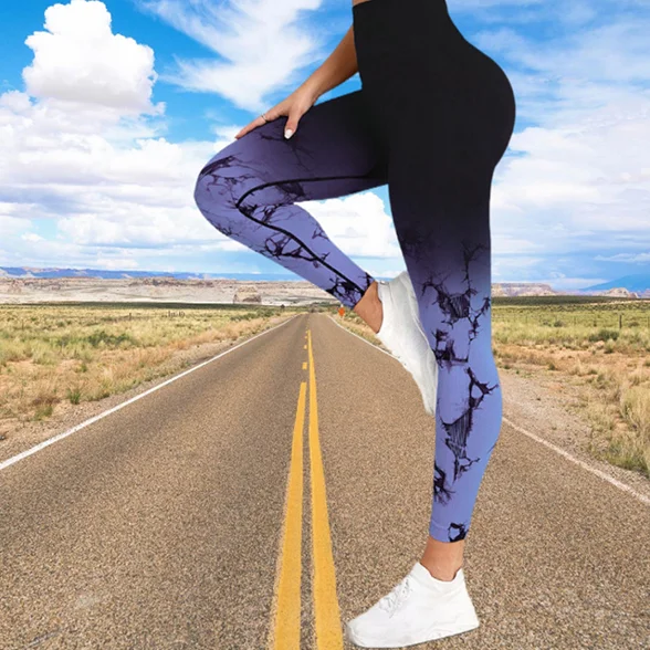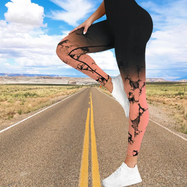 Custom Women High Waist Hip Lifting Fitness Training Wear Seamless Tie Dye Elastic Gradient Running Sports Yoga Leggings