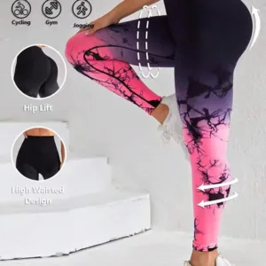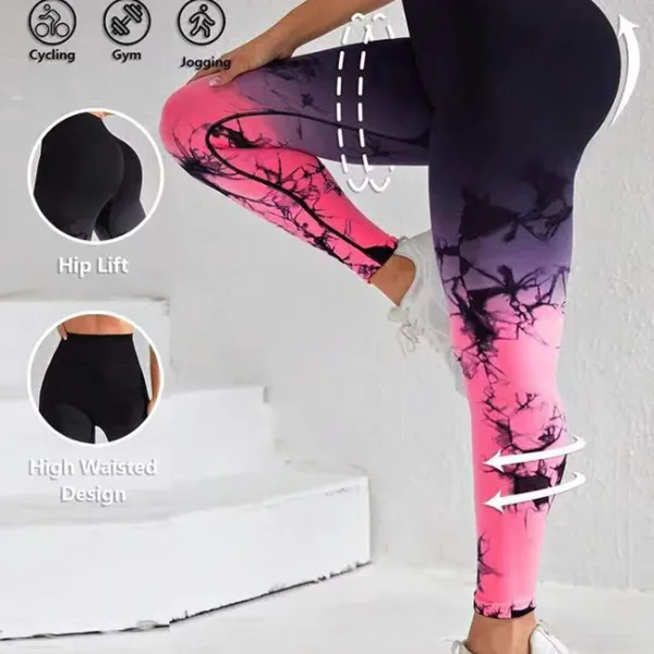 Product Name Custom Women High Waist Hip Lifting Fitness Training Wear Seamless Tie Dye Elastic Gradient Running Sports Yoga Leggings