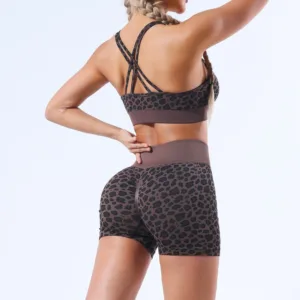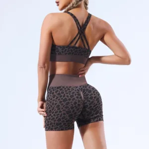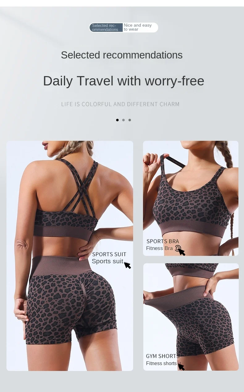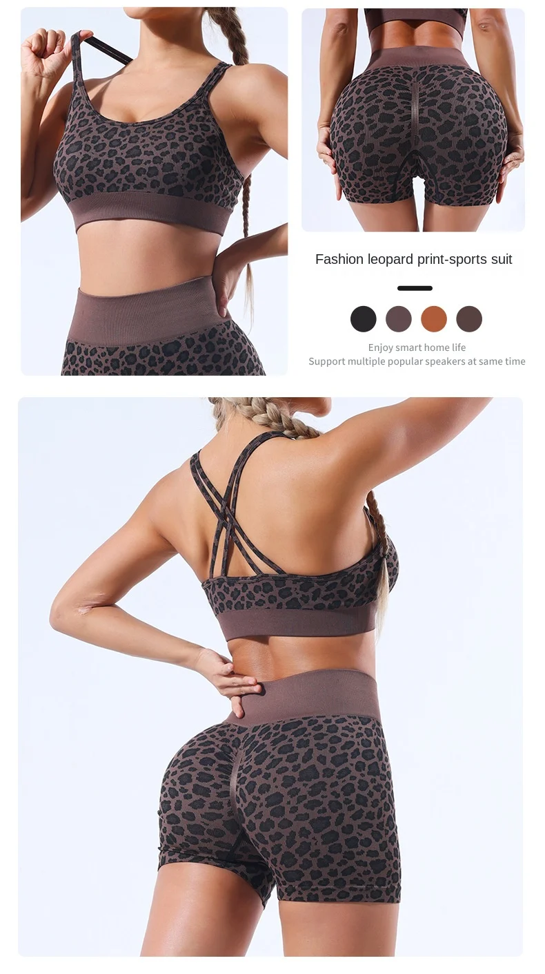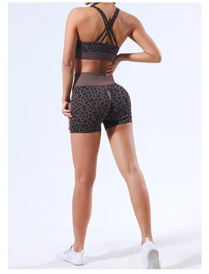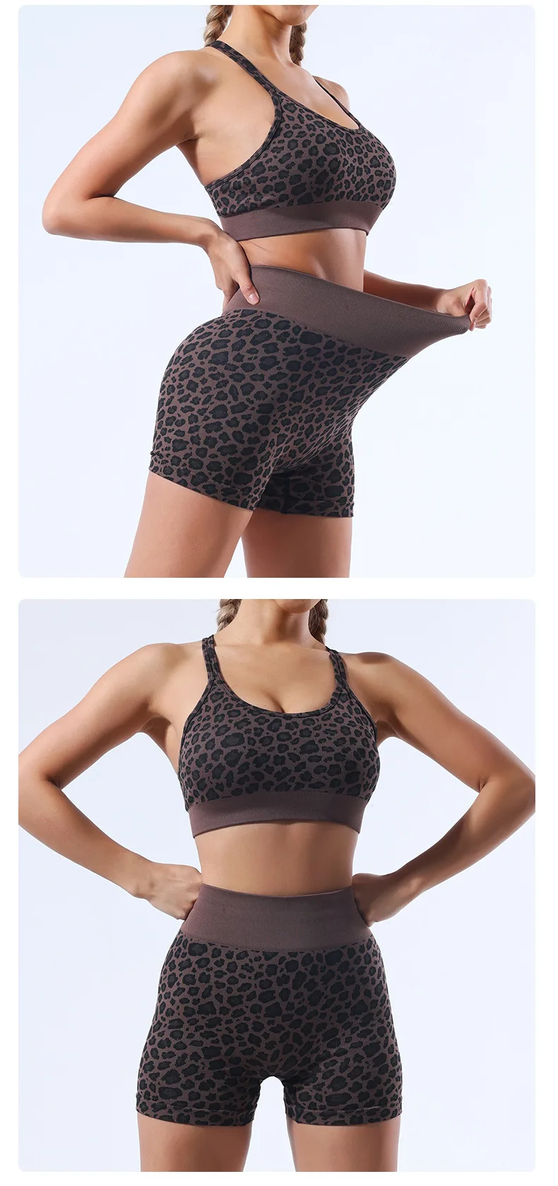 | Product Name | Custom Workout Women Gym Wear Sweat Wicking Seamless Short Lightweight High Quality 2 Piece Leopard Print Yoga Sets |
