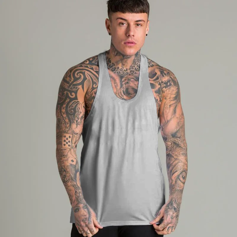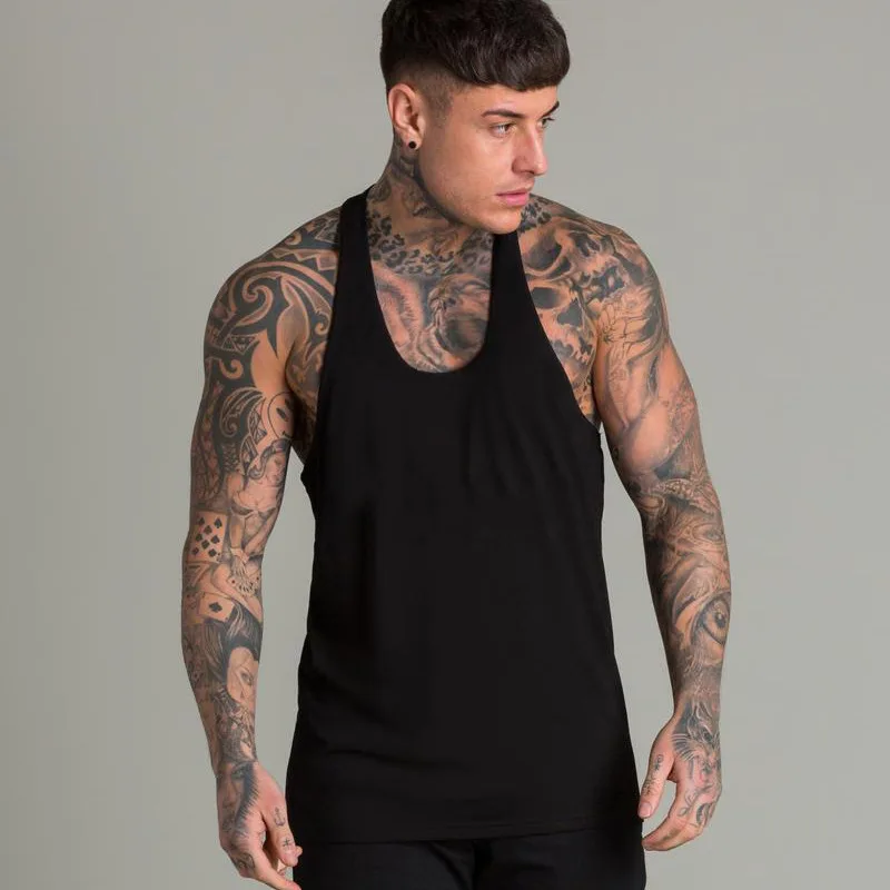 Customized Logo Gym Stringer Vest OEM Plain Sport Body Building Fitness Running Cotton Blank Mens Tank Top