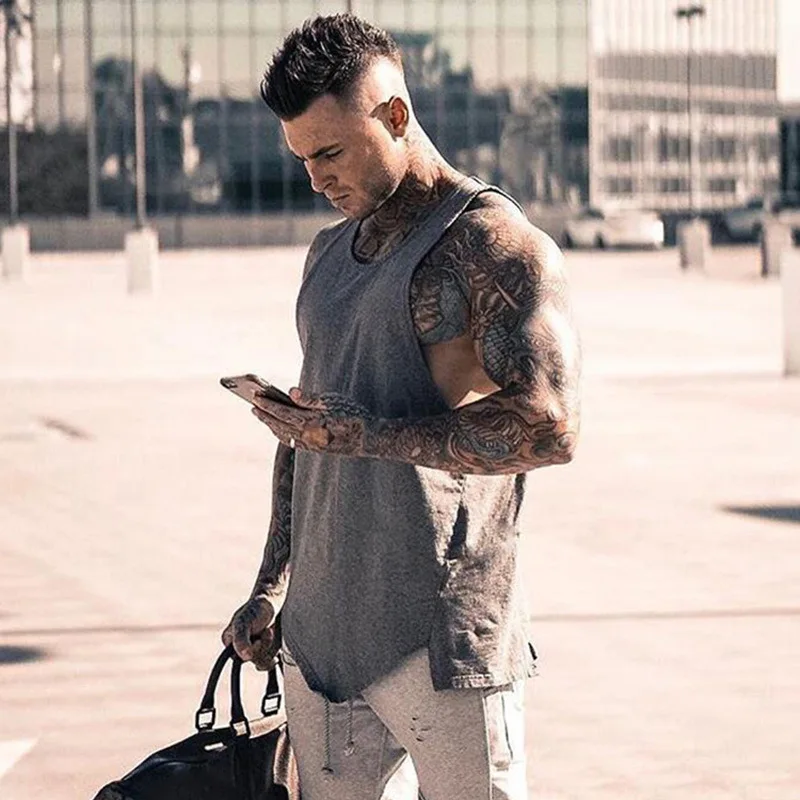 Customized Muscle Training Gym Tank Top Vest Crew Neck Shirt Mens Tank Top Workout Mens Cotton Sleeveless Tank Top