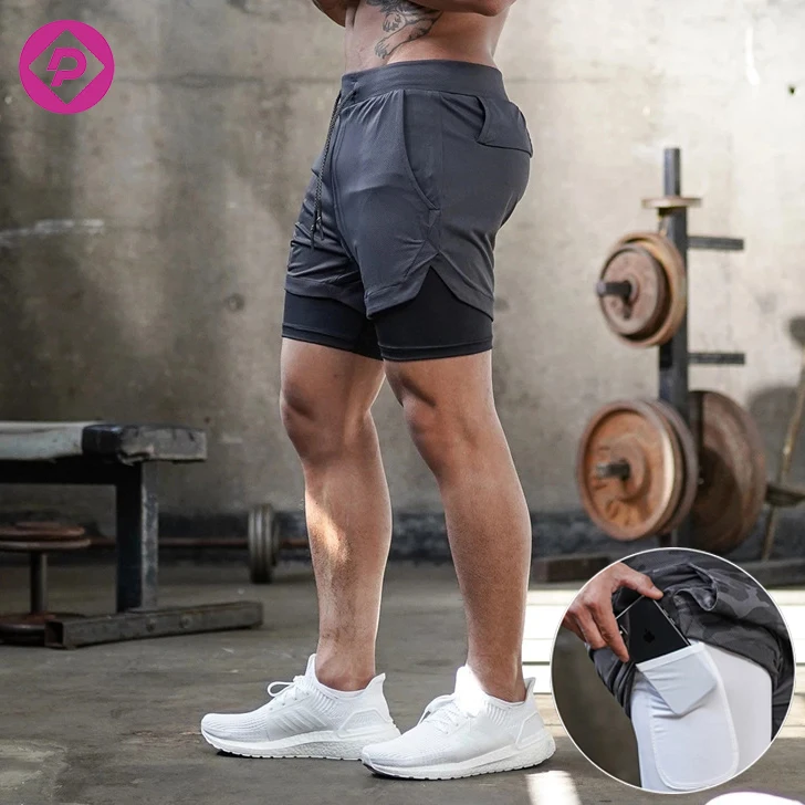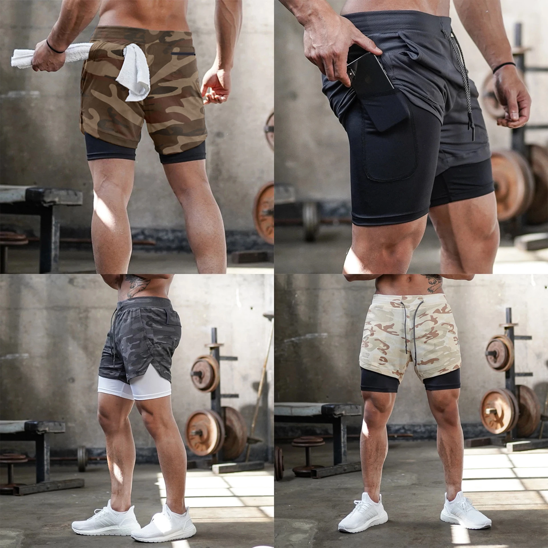 Double-Layer Quick Dry Running Fitness Shorts Outdoor Camouflage Pattern Elastic Waist Closure Men’s Shorts