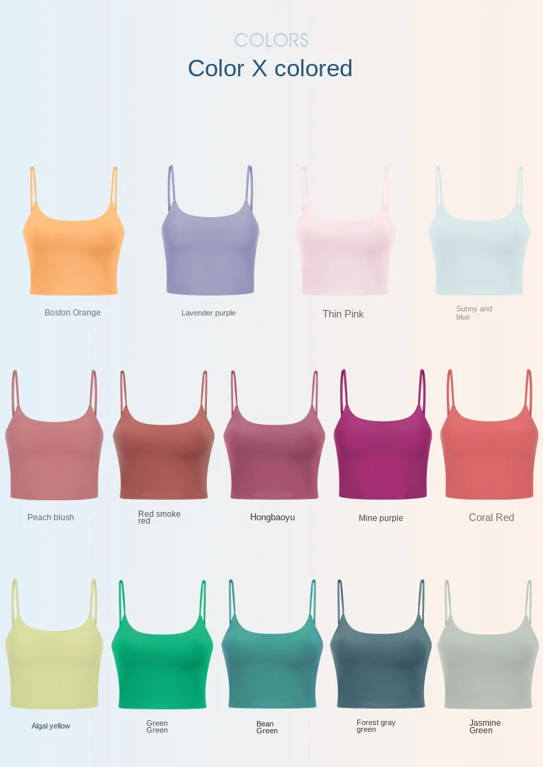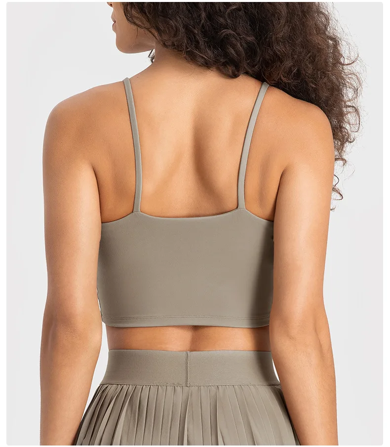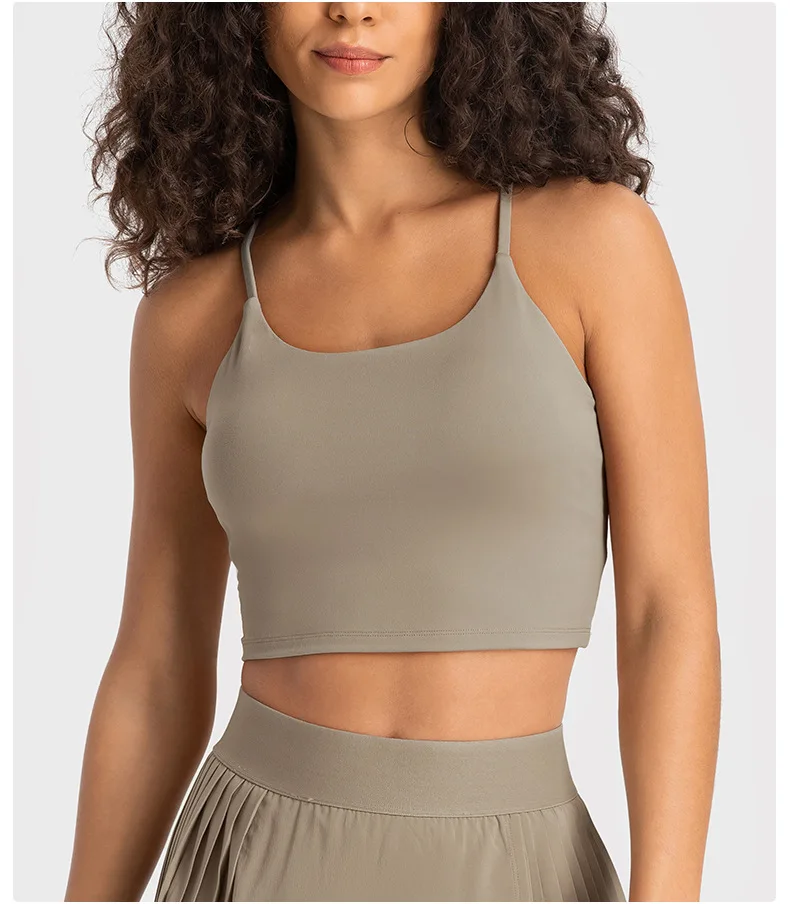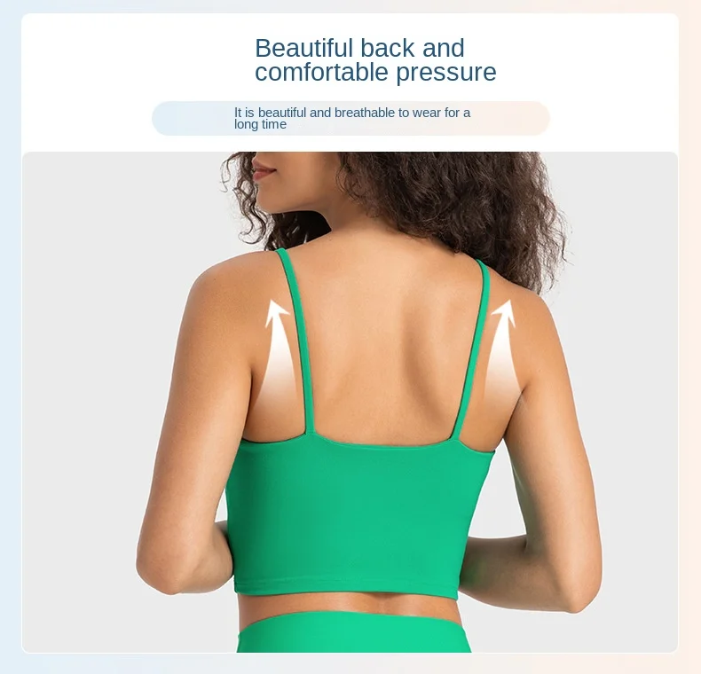 Factory Custom Strappy Sports Bra Thin Strap Girls Sexy Fitness Running Yoga Camisole Tank Top Women With Chest Pad