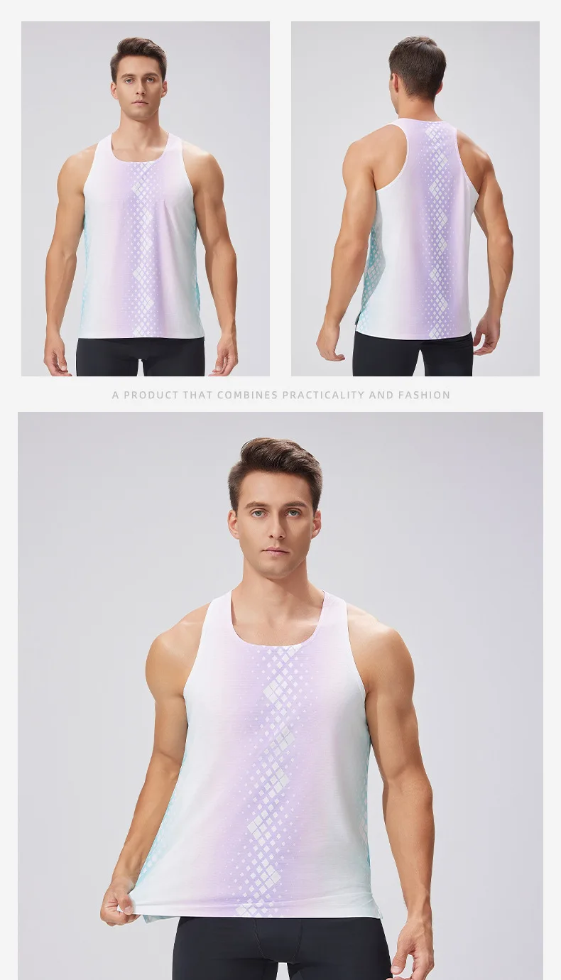 Gradient Color Square Collar Fitness Tank Top Breathable Skin-friendly Sleeveless Fitness Top Sports Running Gym Vest