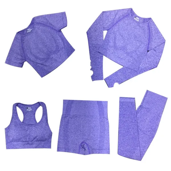 Product Name | Gym Fitness Clothing Sets Sportswear Outfits Seamless High Waist Quick Dry 5 Pieces Butter Soft Ribbed Yoga Set |