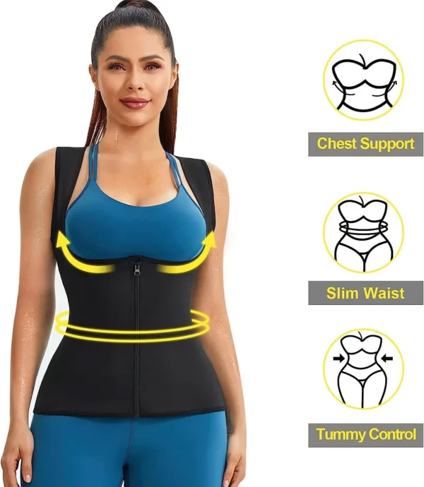 Product Name Gym Fitness Sauna Suit Waist Trainer Vest Slimming Fit Tummy Control Sweat Tank Top Body Shaper for Women with Zipper