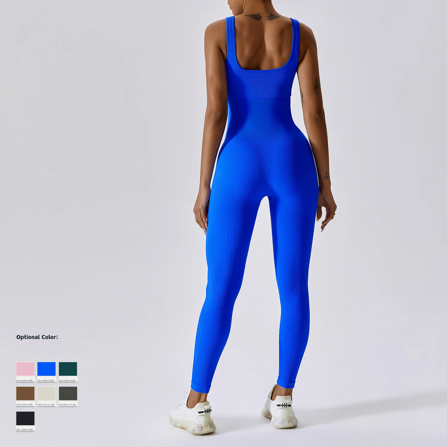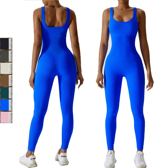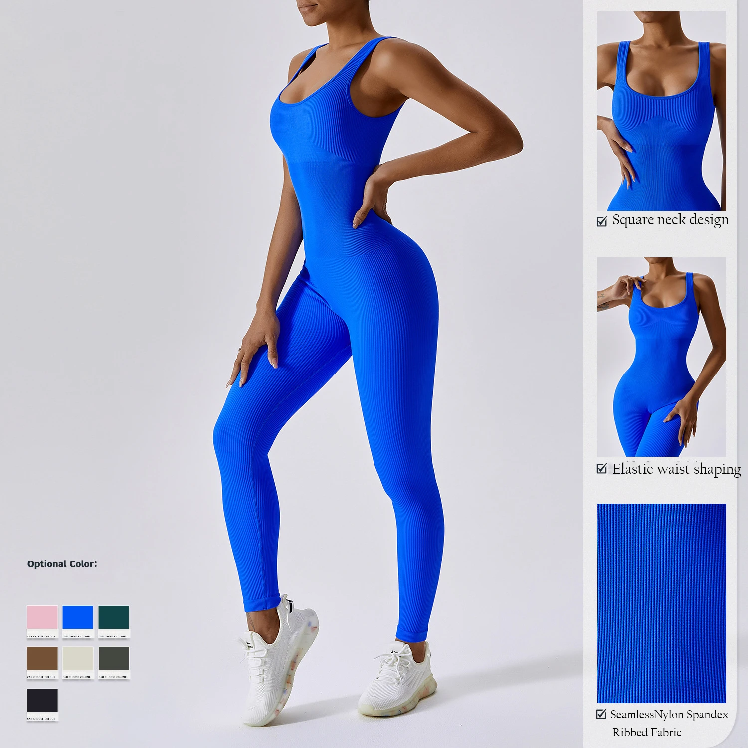 Product Name High Quality Seamless One Piece Women Jumpsuit Ribbed Nylon Spandex Sports Fabric Workout Jumpsuits