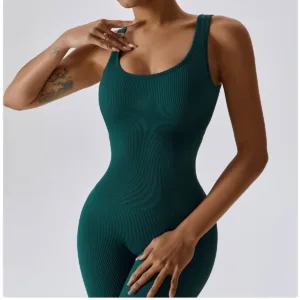 High Quality Seamless One Piece Women Jumpsuit Ribbed Nylon Spandex Sports Fabric Workout Jumpsuits