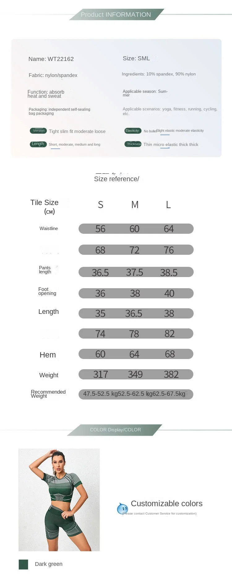 | Fabric | 90% Nylon + 10% spandex
