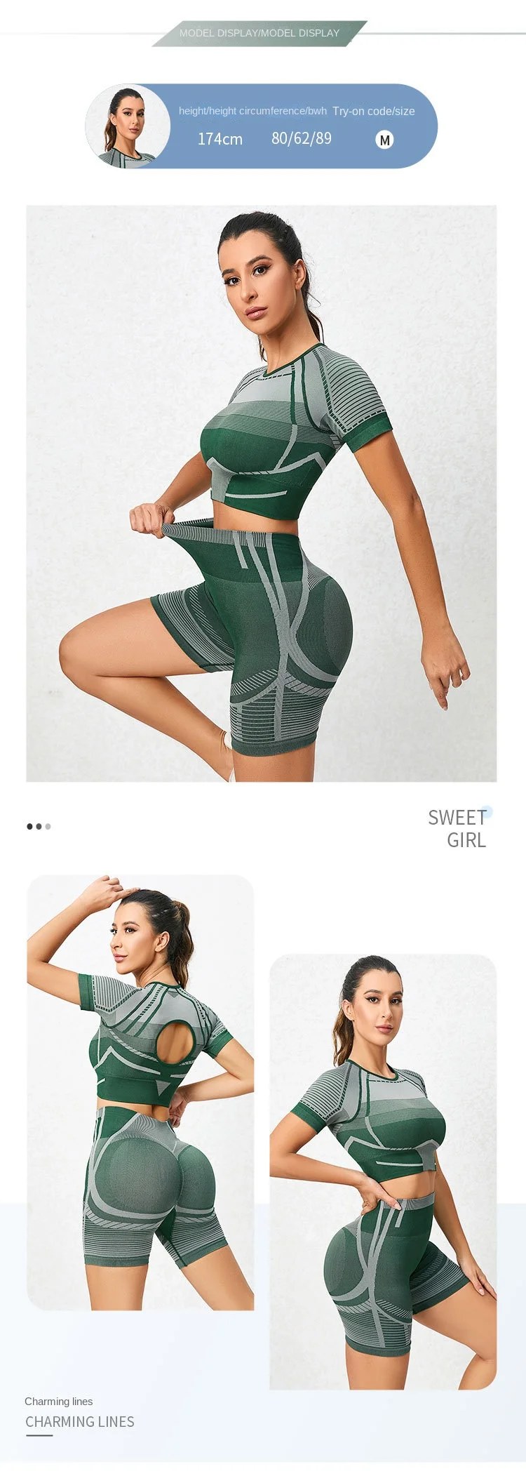 | Product Name | High Quality Women Gym Fitness Sportswear Crewneck Sweatshirt Scrunch Butt Lifter Shorts Seamless Yoga Set | ||||