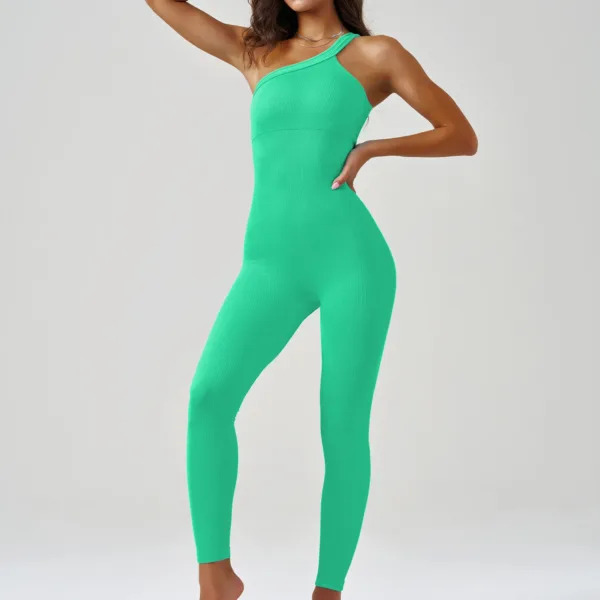 Product Name Women Jumpsuits Gym Romper One Shoulder Sports Seamless Ribbed One Piece Workout Yoga Jumpsuits