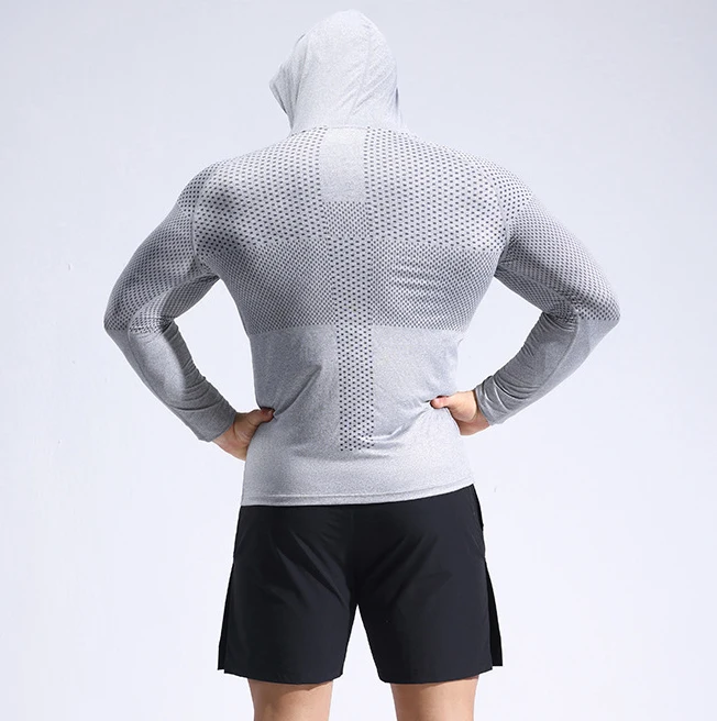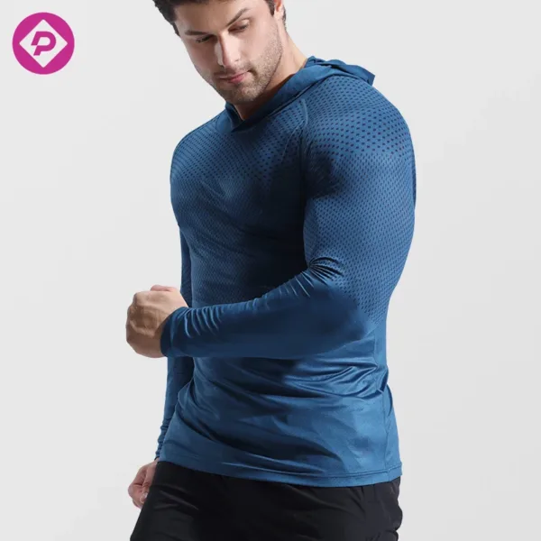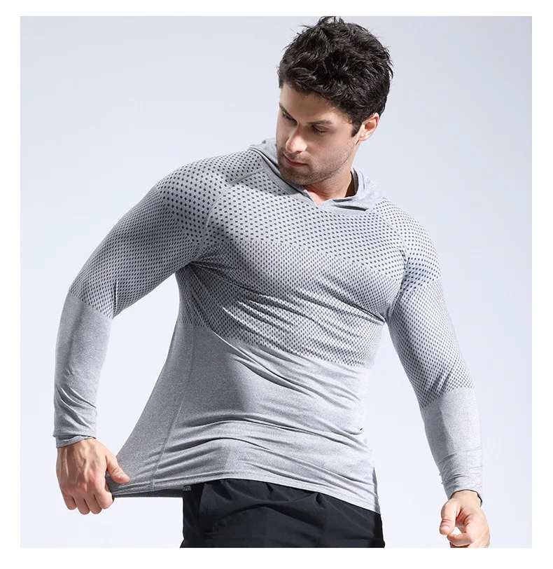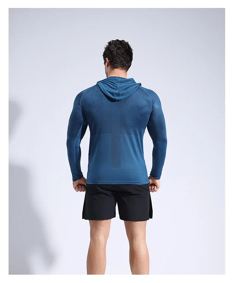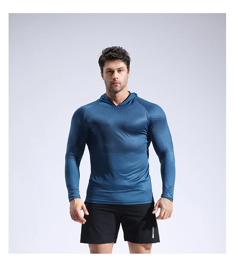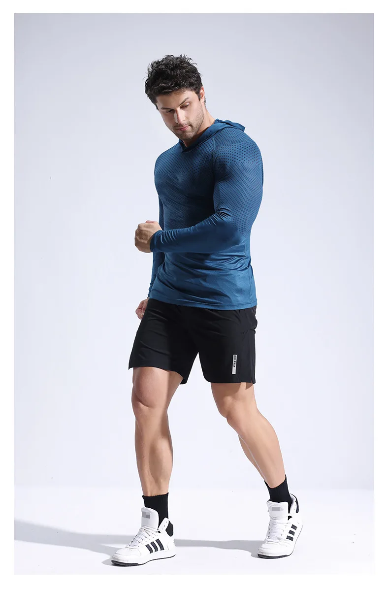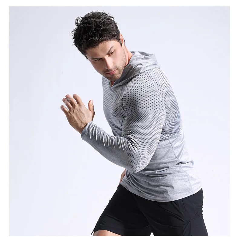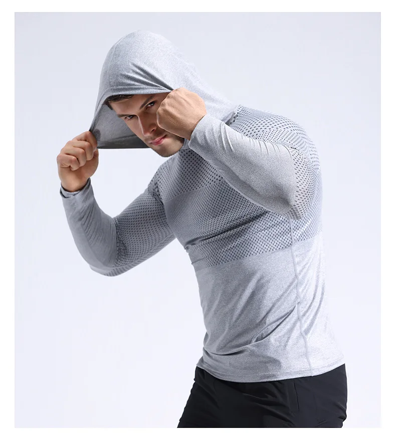Hooded Quick-Drying Summer Sportswear Breathable Long-Sleeved Training Top Men’s Running Muscle Fitness T-Shirt