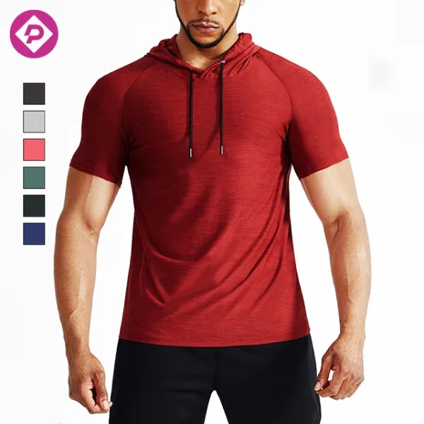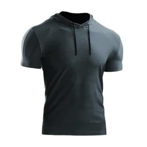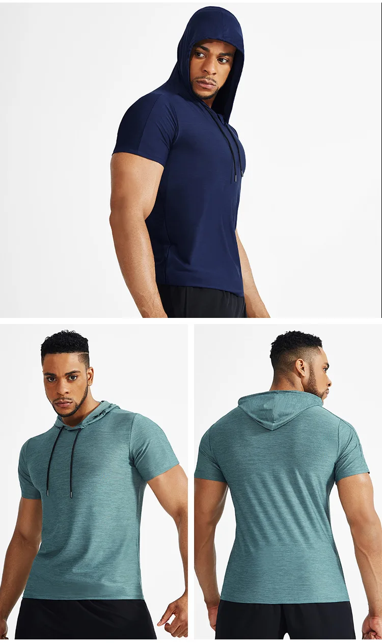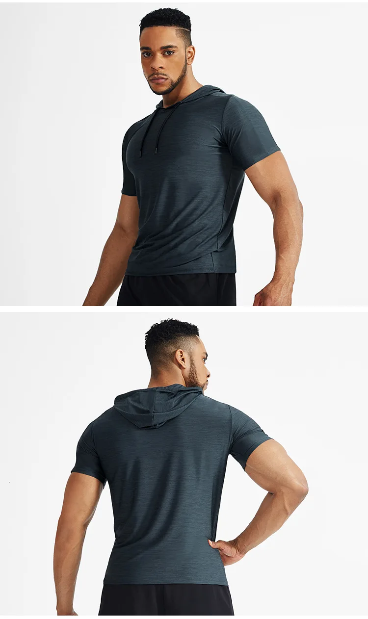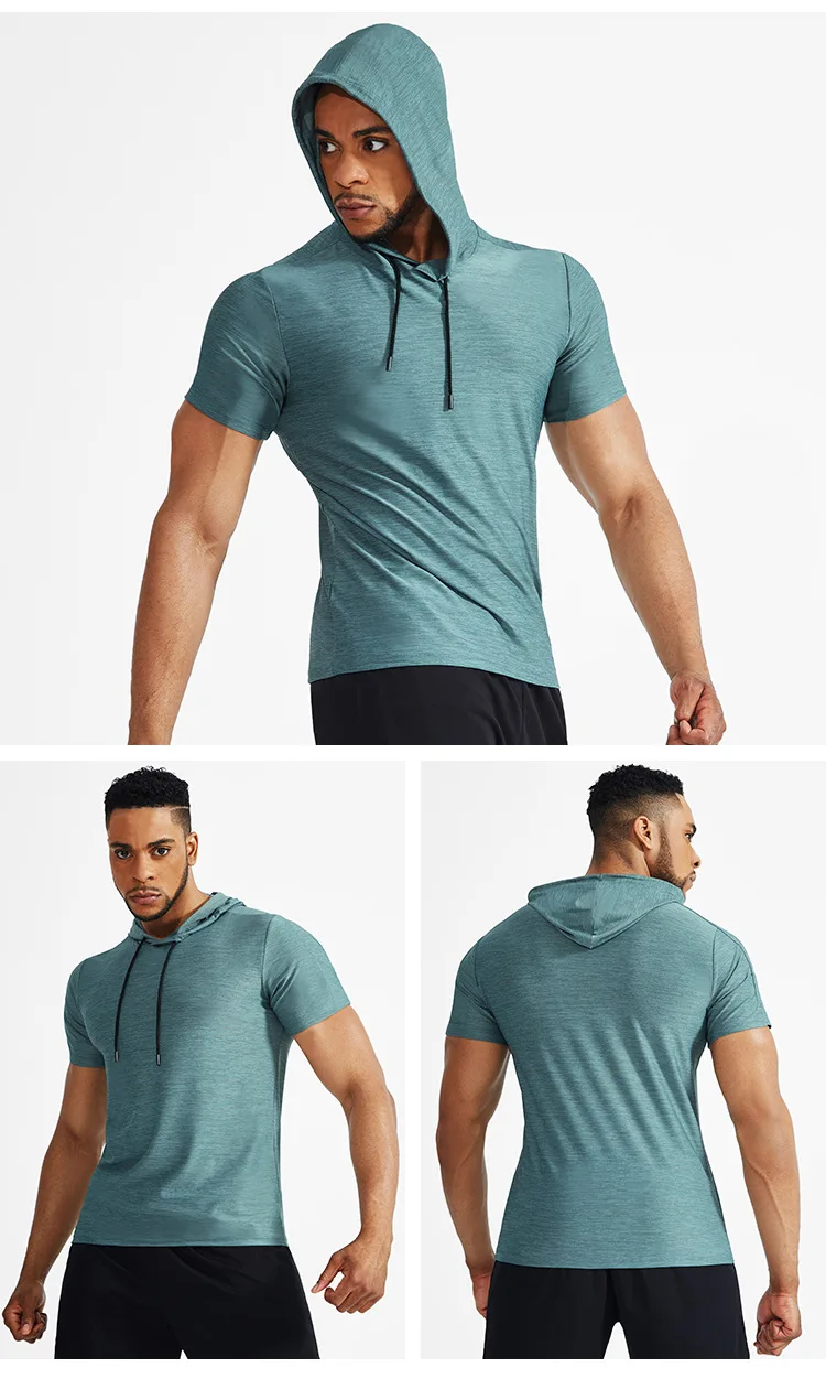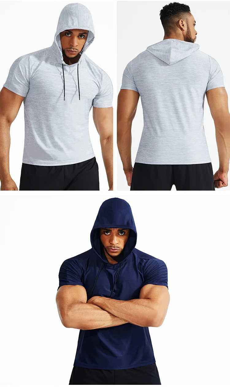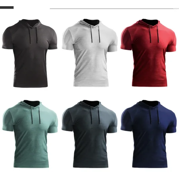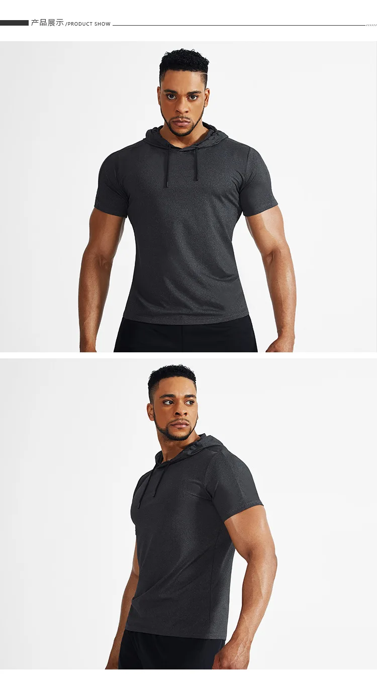 Hooded Quick-Drying Summer Sportswear Breathable Short-Sleeved Training Top Men’s Running Muscle Fitness T-Shirt