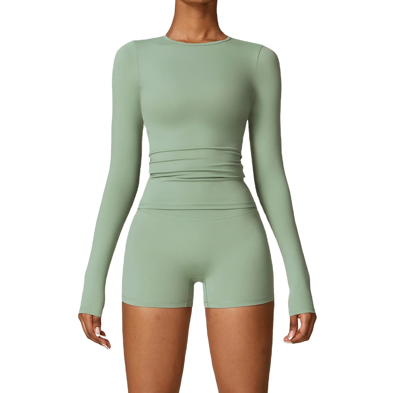 Product Name Hot Sale Custom Private Label Solid Gym Fitness Set Pilates Workout Running Long Sleeve Yoga Set For Women