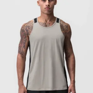 Hot Sale Muscle Training Vest Sleeveless Mesh Splicing Crewneck Breathable Cotton Gym Tank Top Men