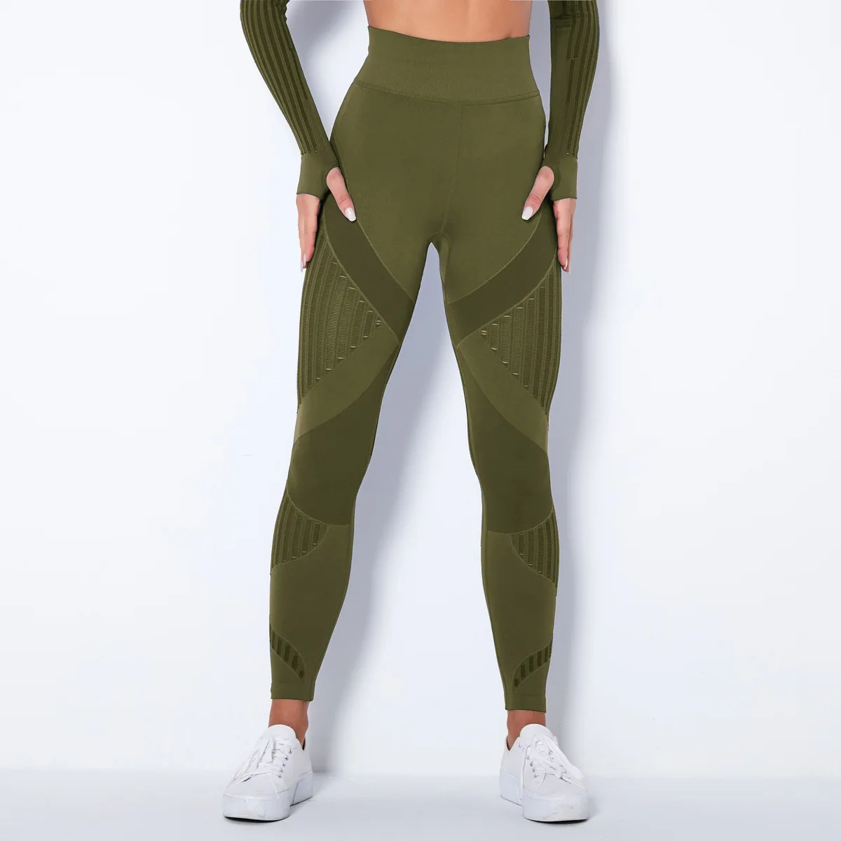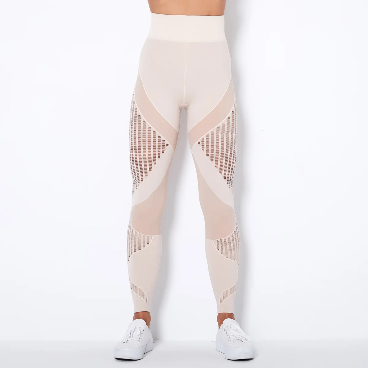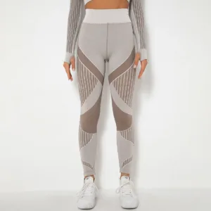 Product Name Hot Sale Striped Gym Workout High Waist Comfy Yoga Pants Mesh Breathable Stretch Slim Fit Yoga Leggings For Women