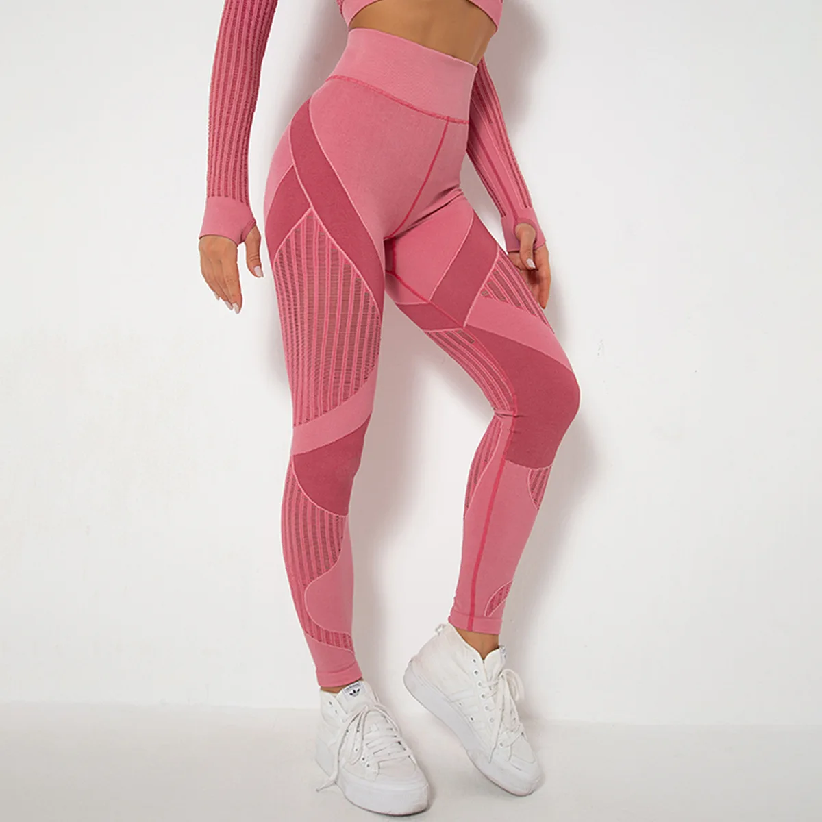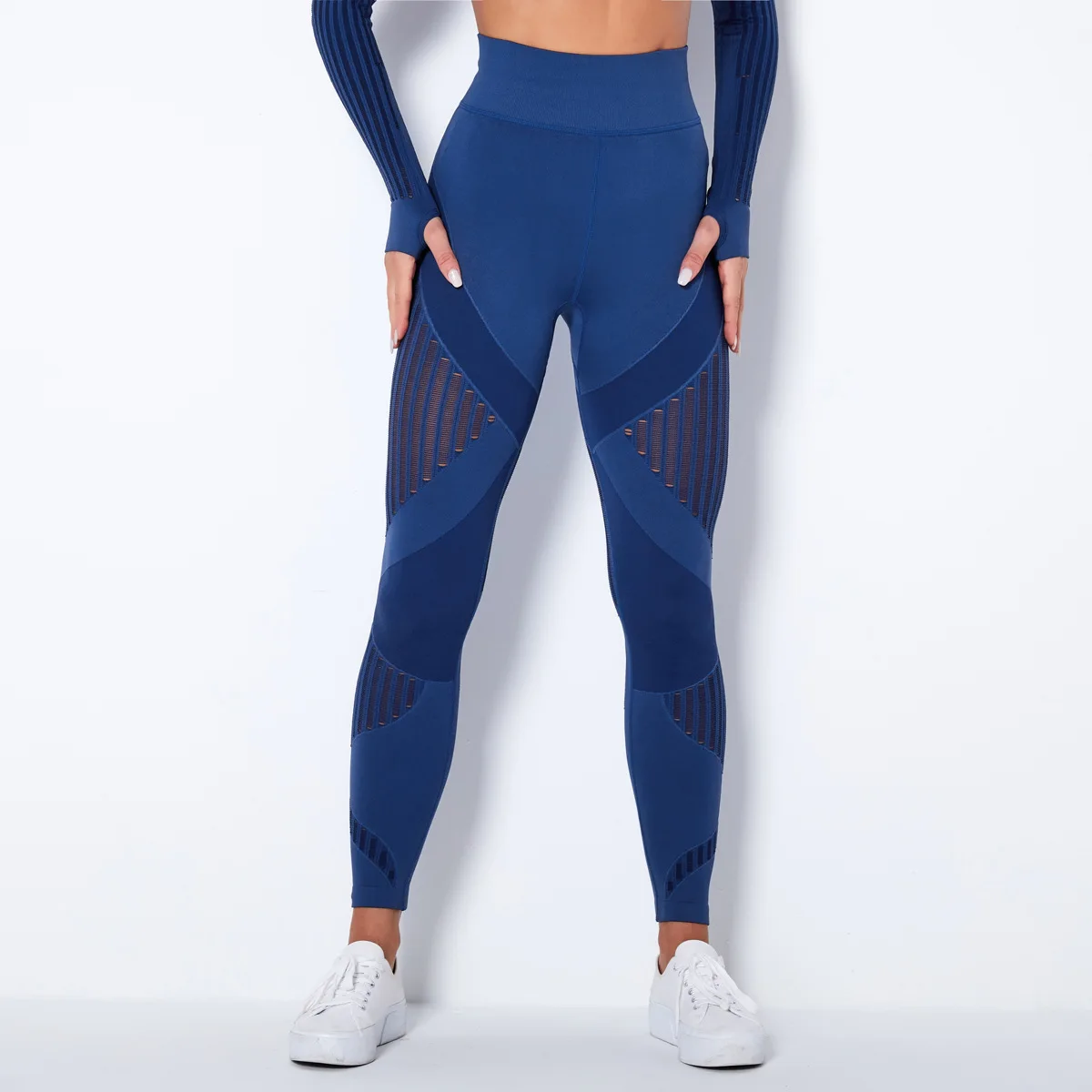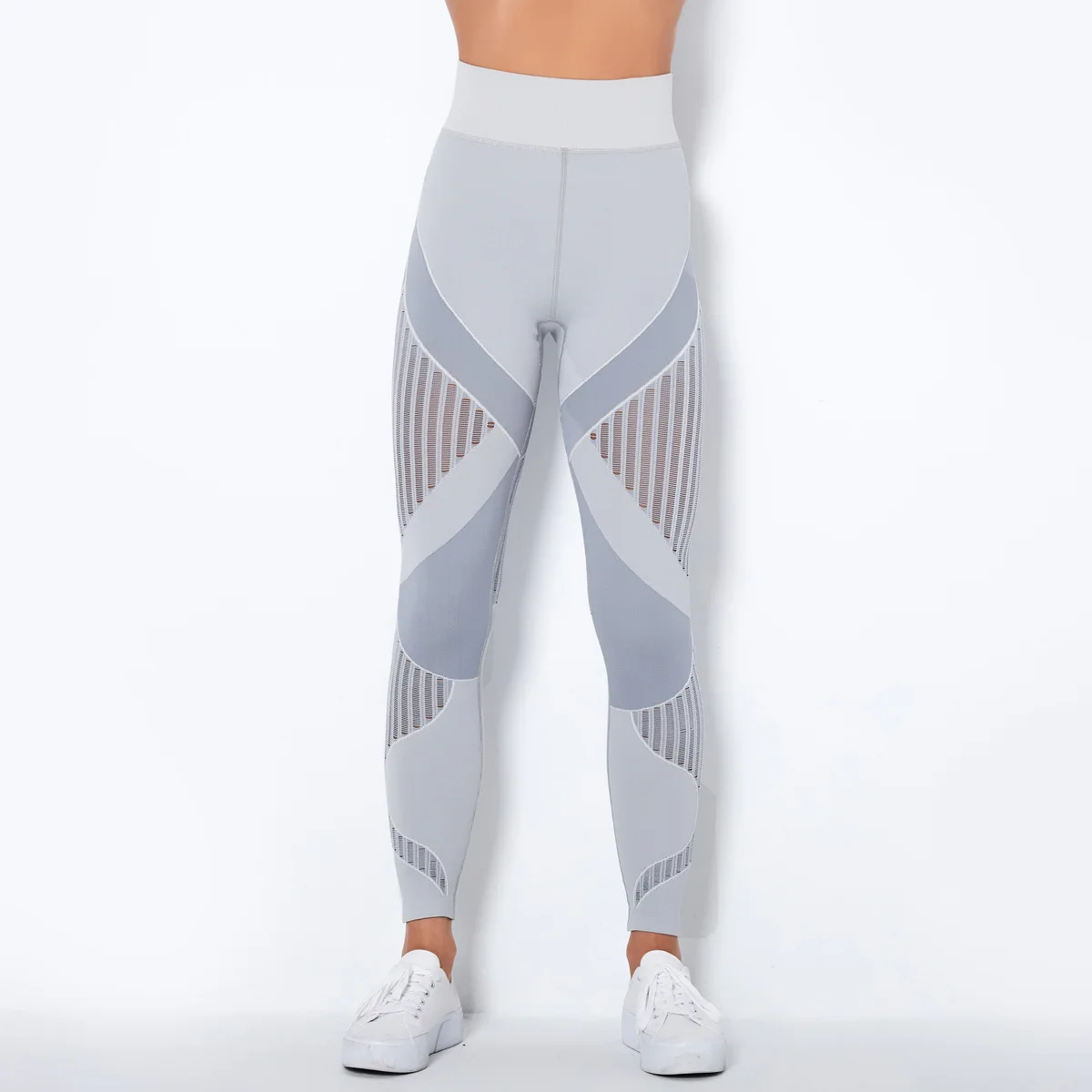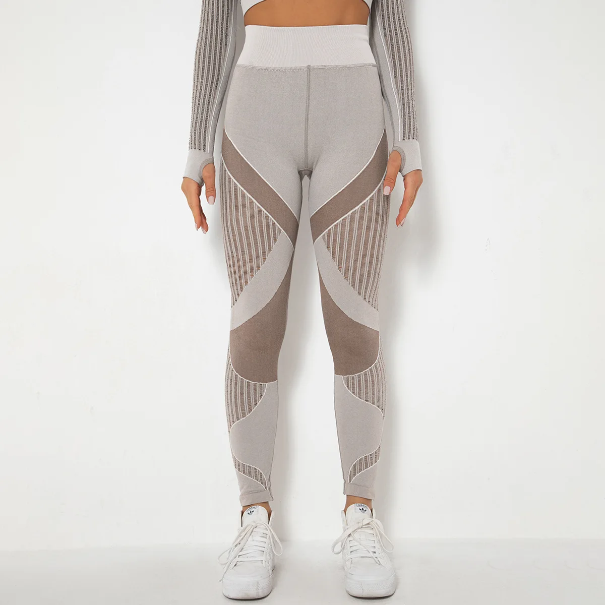 Hot Sale Striped Gym Workout High Waist Comfy Yoga Pants Mesh Breathable Stretch Slim Fit Yoga Leggings for Women