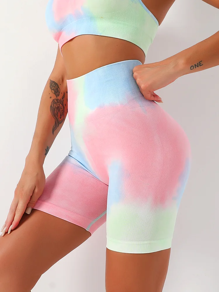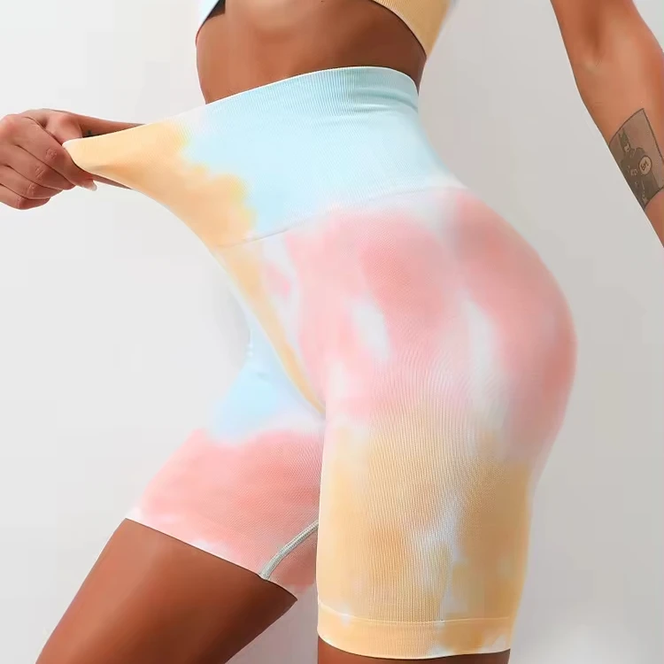 | Product Name | Hot Sale Women Seamless Knitted Tie Dye Scrunch Butt Lifting Sport Yoga Short Colorful High Waist Fitness Gym Shorts |