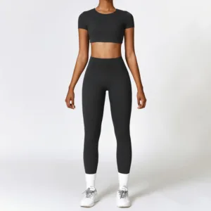 | Product Name | In Stock Breathable Solid Gym Slim Fit Workout Outfits Ribbed High Waist Seamless Cropped 2 Piece Yoga Set For Women |