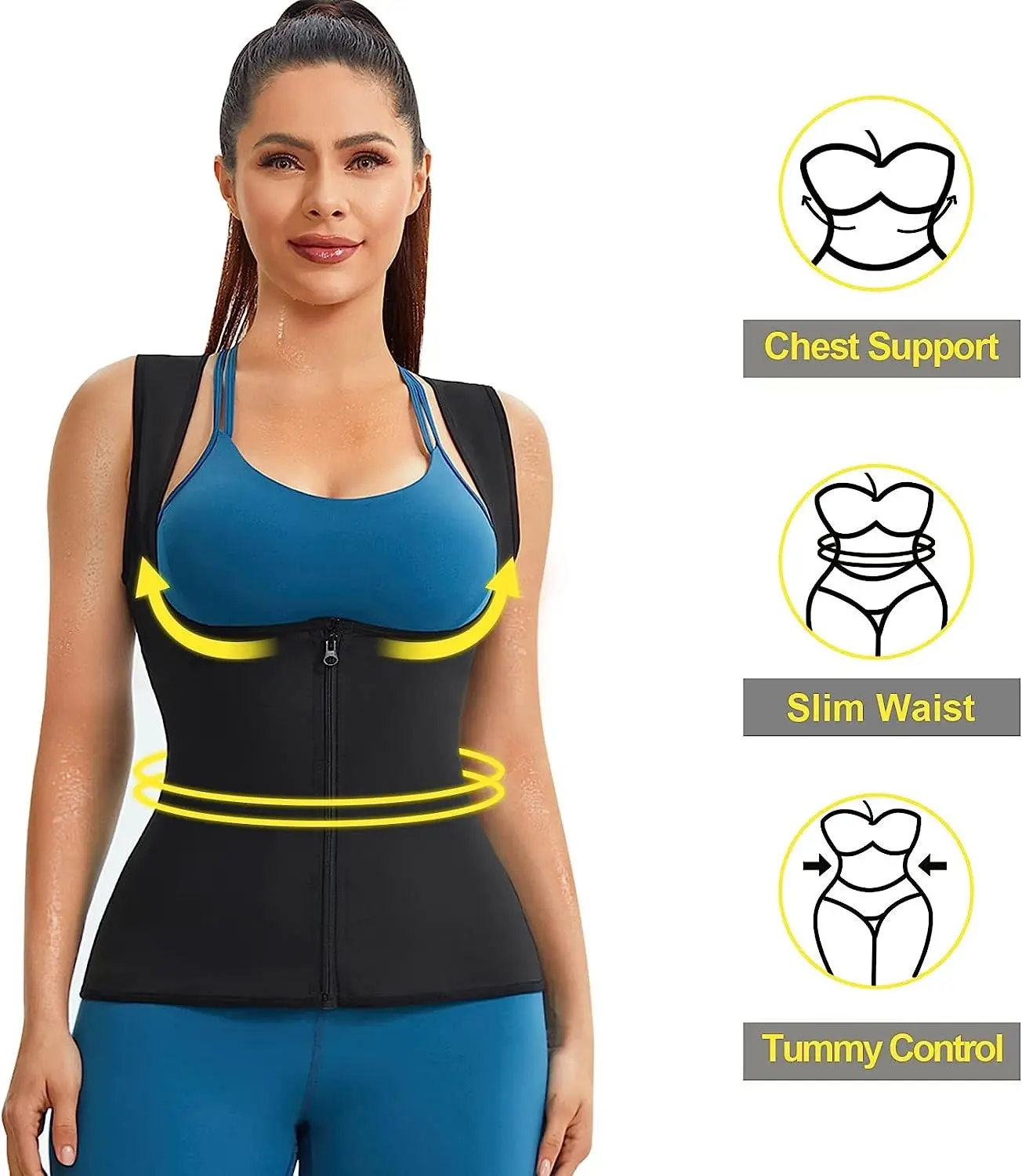 | Product Name | Gym Fitness Sauna Suit Waist Trainer Vest Slimming Fit Tummy Control Sweat Tank Top Body Shaper for Women with Zipper |